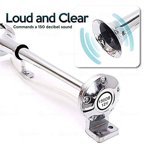 LOUD AND POWERFUL - The Zone Tech single horn blares out a loud and powerful warning. The great bellowing sound catches everyone's attention and is heard all over. The two durable trumpets can produce sound as loud as 150DB.
