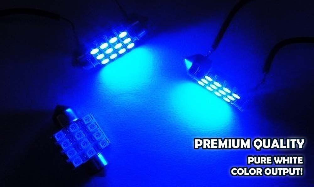 Zone Tech 31mm 12-smd Festoon Dome Light LED Light Bulbs - 4-Piece Premium Quality Blue 31mm 12-smd 1.25" 12v Festoon Dome Light LED Bulbs De3175 De3022 De3021 3175
