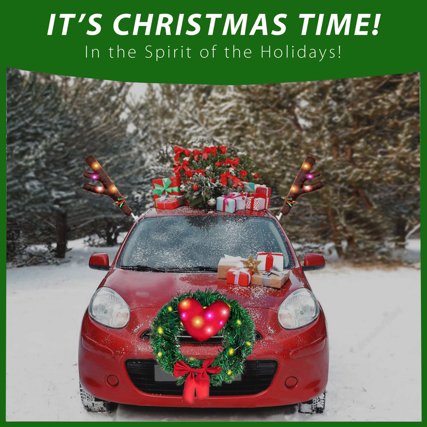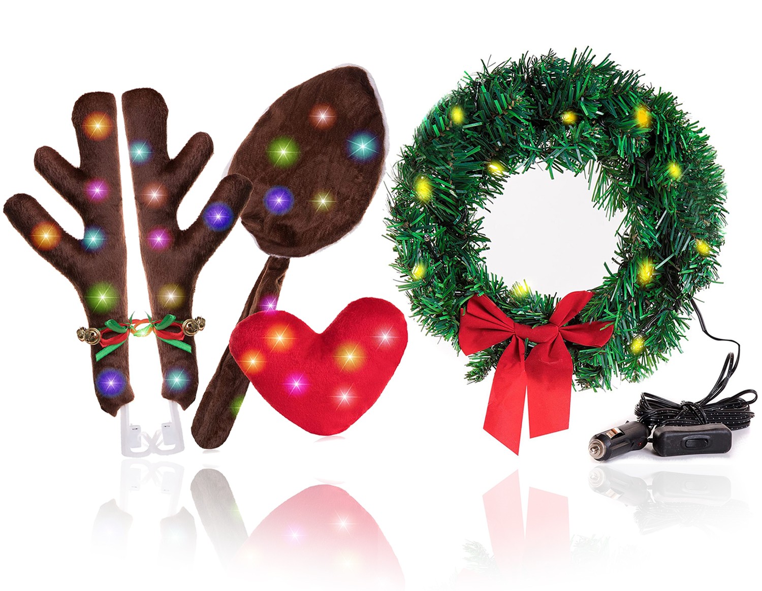 Christmas Car Reindeer Antlers Kit Reindeers Antlers, Heart Nose and Tail with LED Lights and Bells, Car Christmas Wreath Decoration with Led Lights Premium Quality Christmas Accessories for SUV Truck