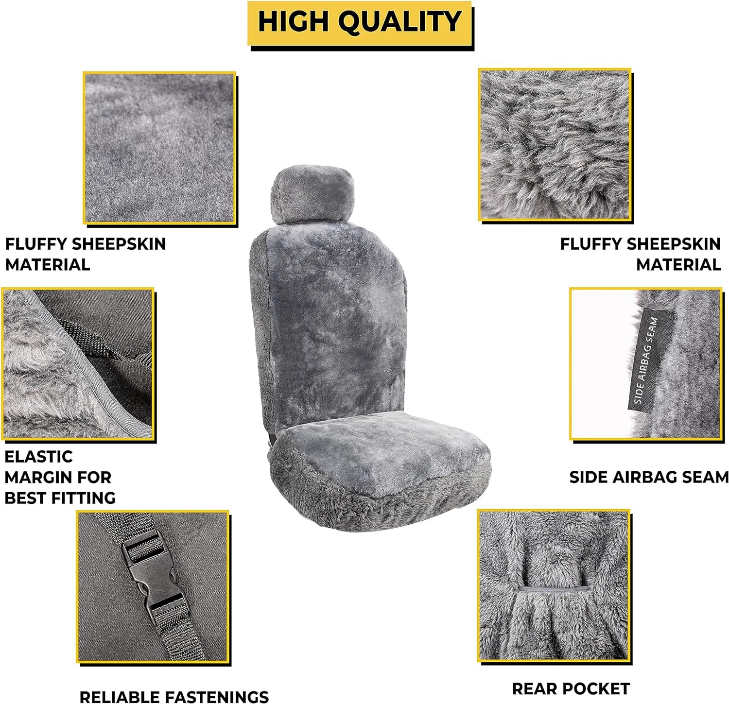 You're reviewing: Genuine Sheepskin Gray Seat Cover Universal Fit Car Full Seat Furry Cover