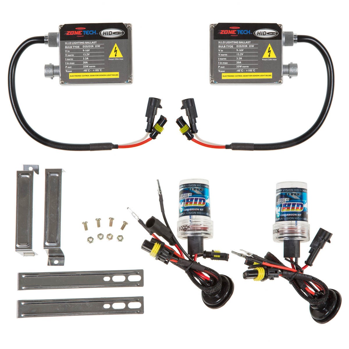 ► The Zone Tech HID Xenon Premium Headlight Conversion Kit is equipped with HID (High Intensity Discharge) lighting technology that relies on an electrical charge to ignite xenon gas contained in a sealed bulb. Unlike halogen bulbs, HID's emit a type of light that closely resembles Natural Daylight and is therefore Easier on human eyes. The Zone Tech HID slim ballast are no match for the Intensity, Purity, and Efficiency of high intensity discharge headlights.