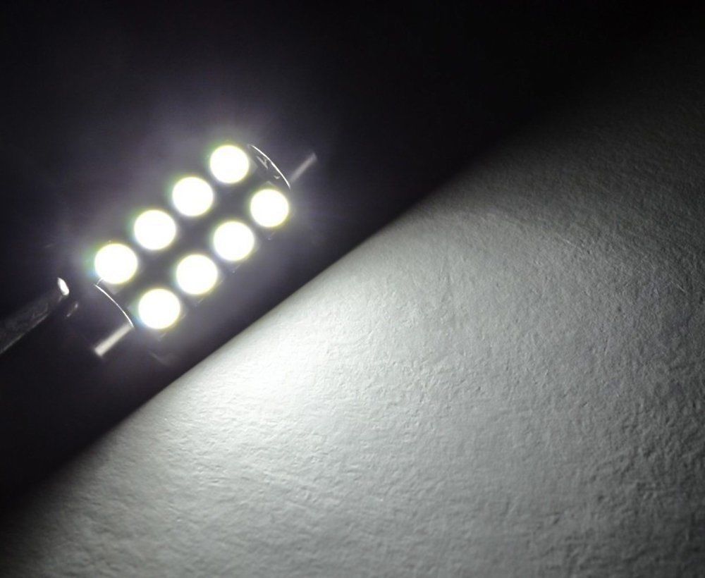 4x Bright White LED Bulb 8 SMD Festoon lights 42mm to 44mm Rigid Loop