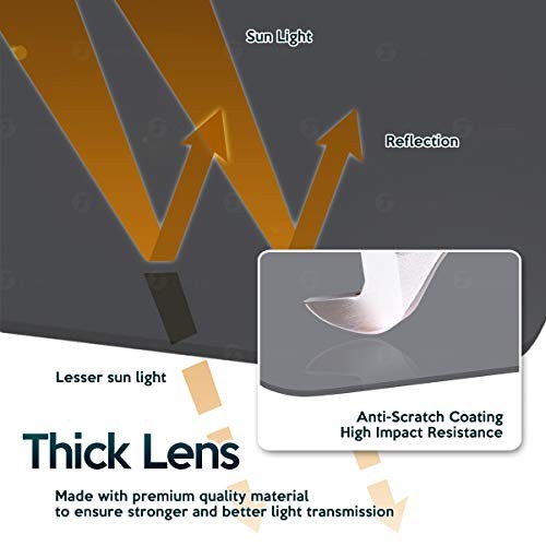 ► ANTI-GLARE - The Zone Tech car anti-glare visor helps against sudden glare from bright sunshine and is particularly useful in low winter sunshine when existing sun visor is inadequate. This dims strong or high beam lights from Car or other sources pointing directly at you while driving at night and the solar panels can filter out 90% of harmful rays protecting your eyes effectively .It has a strong light blocking rate about 2.6% and Anti-UV 97.3, isolation of ultraviolet (uv) light (315