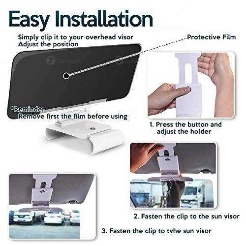 ► The Zone Tech car anti-glare visor is made from premium quality thick, very strong, safe and durable PP & TPR material to give maximum strength and durability for long lasting usage. Universal in size, compatible with all vehicles. It is very quick and easy to install, just clip it onto your overhead visor. You can easily adjust its position. The visors can be adjusted by rotating 180 degree to accommodate your needs. The sun visor can also be kept easily in the storage when not in use. Once folded back into place, the space it takes up is minimal.