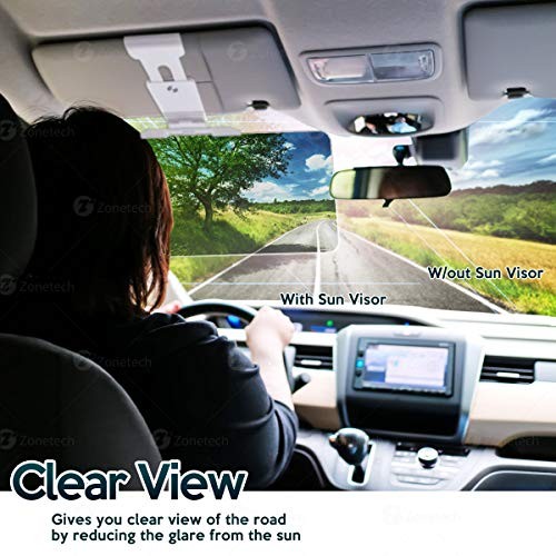 ► EYES COMFORT - The Zone Tech car anti-glare visor avoids sun glare stabbed shot to ease eyestrain. This is ideal for people who are more susceptible to glare. The visor relieves eye f...View More