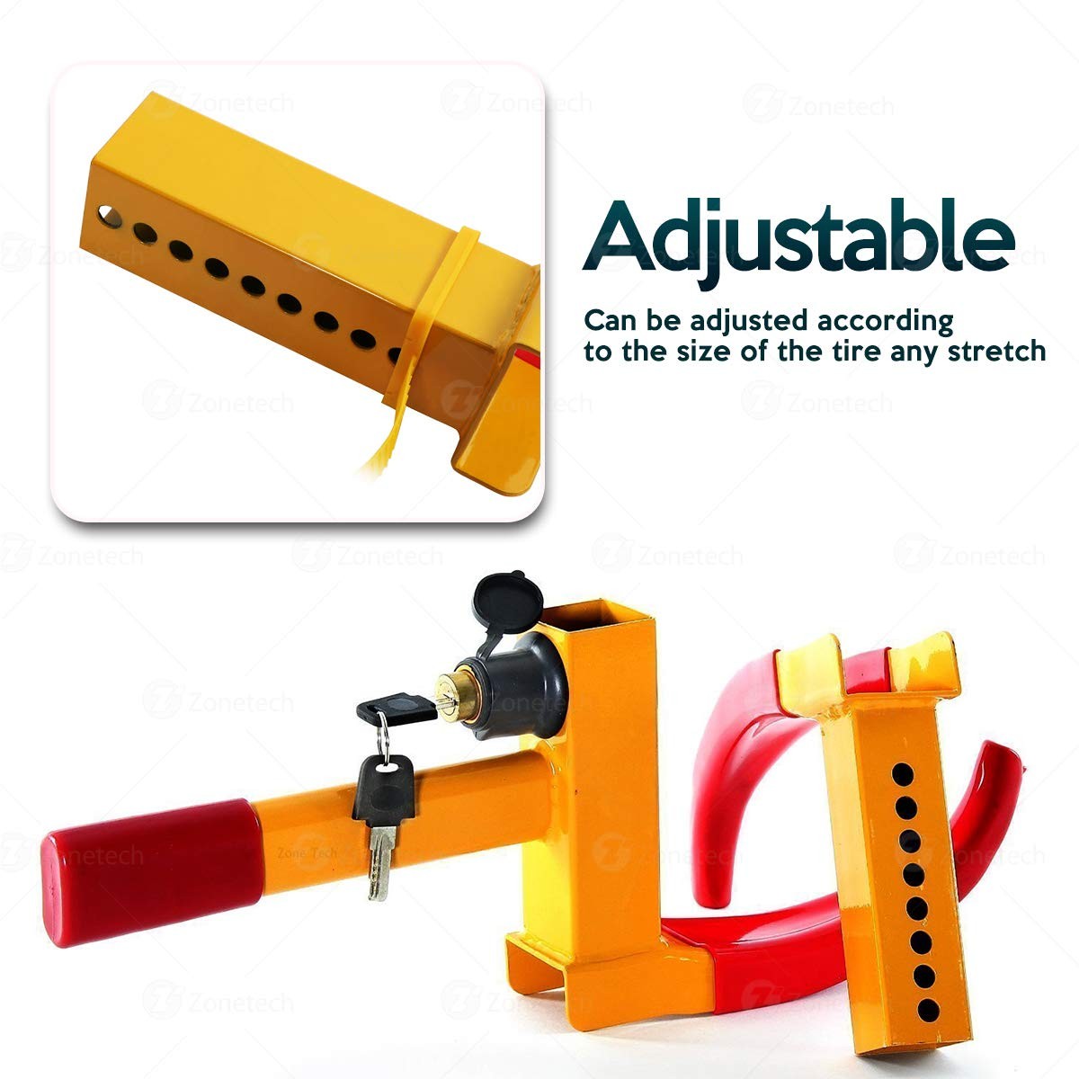 SECURITY - The Zone Tech tire clamp securely wraps around your wheel and prevents theft attempts, towing, or any messing with vehicle. It works for cars, vans or even trucks.