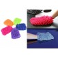 HIGH ABSORBENCY The wash mitt is made of thick microfiber strands that are woven to form a caterpillar-like fingers that are highly absorbent. Compared to ordinary brushes and mitts, the microfiber wash mitt holds more soap and water allowing the cleaning to be quick and easy.