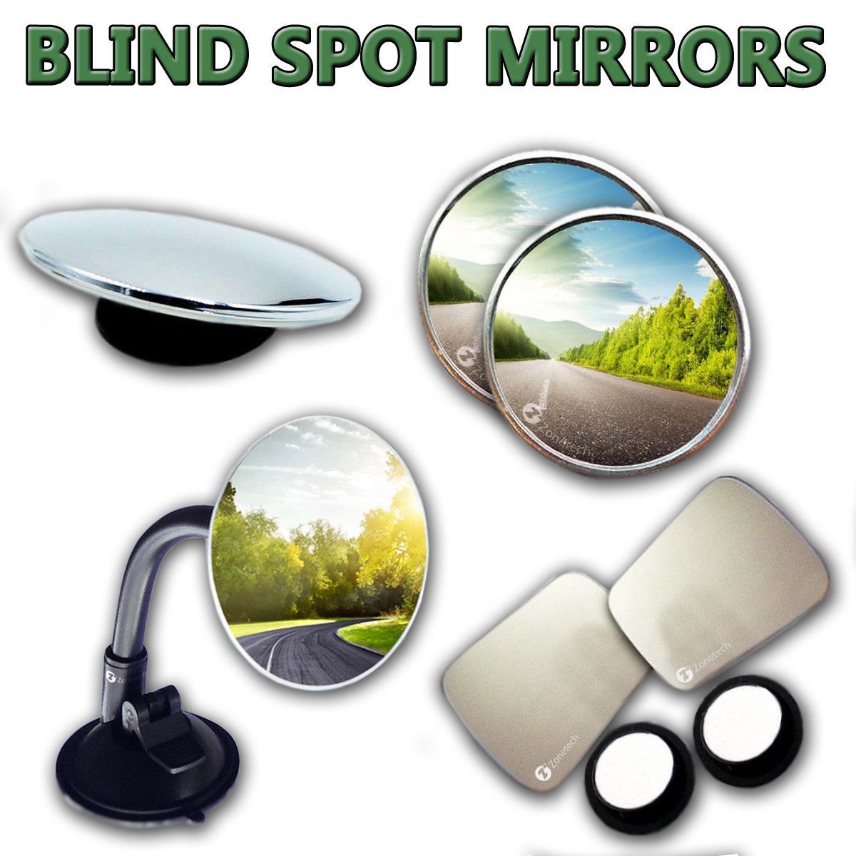 ► The Zone Tech Rearview Blind Sport Mirrors are a Small Investment that will go a long while. Its Affordable price combined with its Sleek look, Safety features and premium quality make it a "Must Have" for drivers, taxicabs, carpoolers, teenagers or any car owner. The Zone Tech Blind Spot Mirrors easily mount to the original factory mirror with the Convenient stick on mounting. Although they can be placed anywhere you prefer they are typically place on the bottom outside corner of the original mirror.