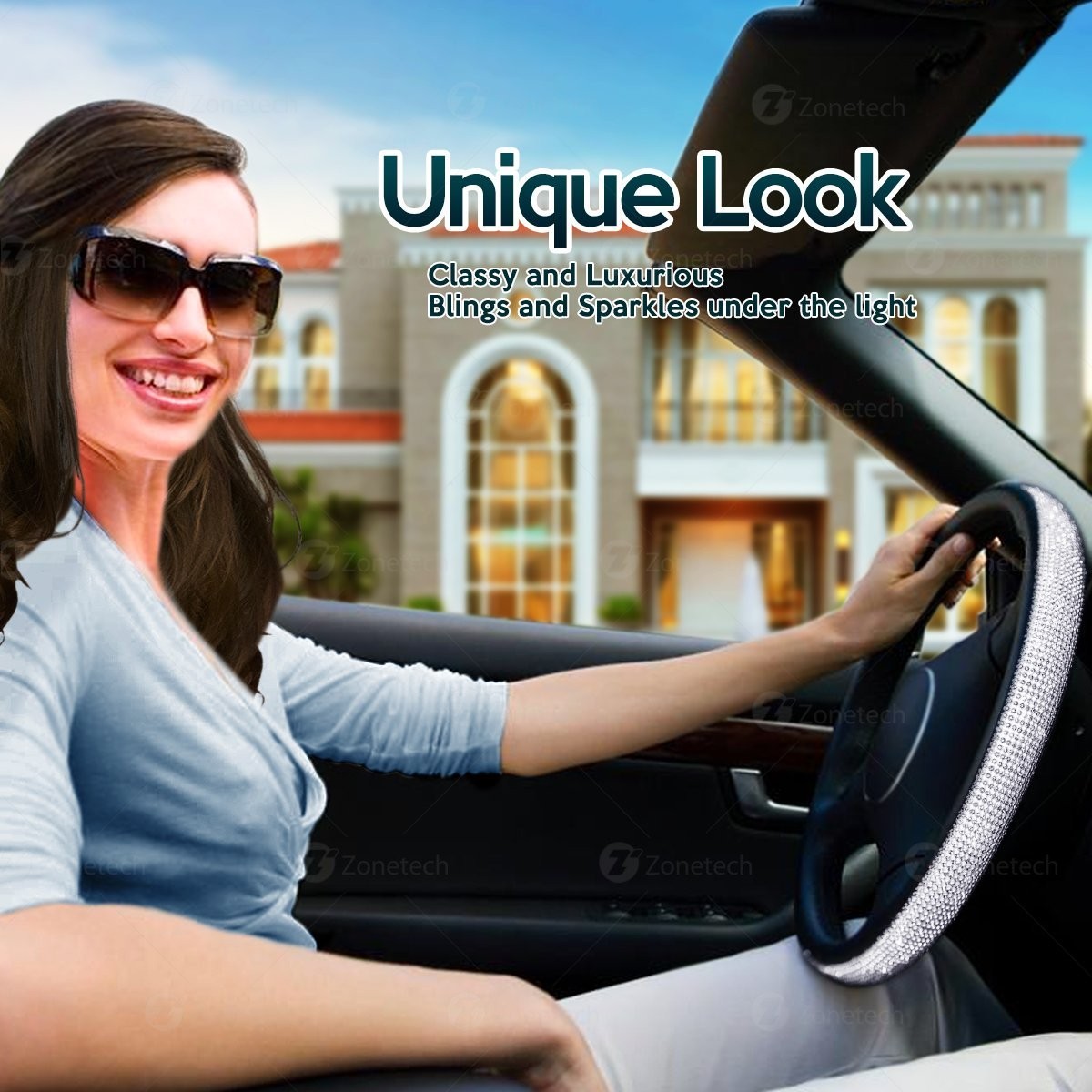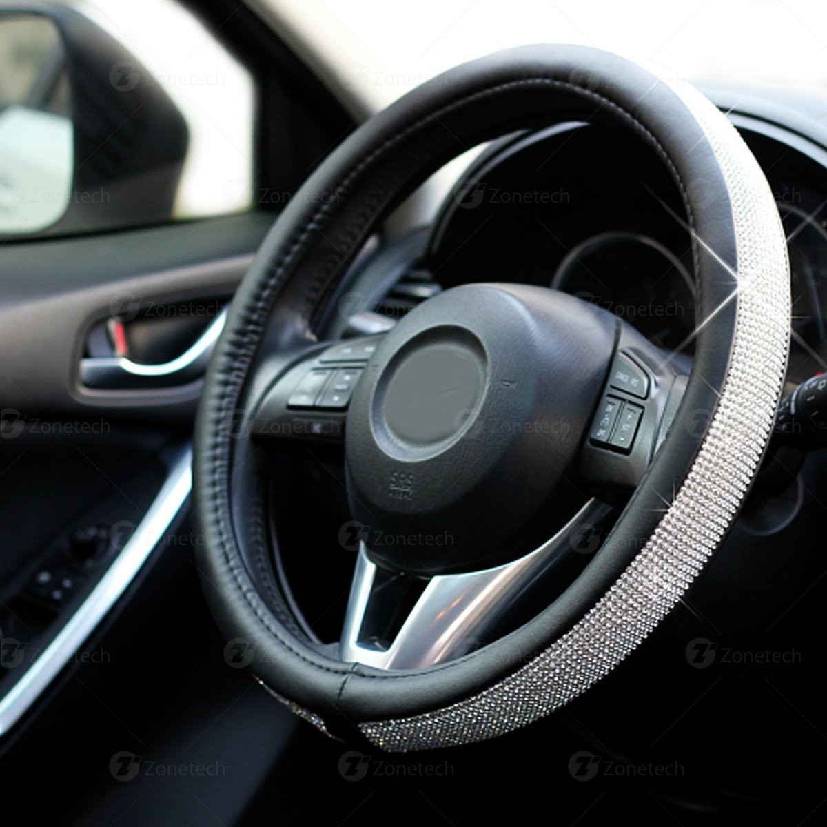 ► Put Luxury and Comfort right at your finger tips with the Zone Tech Shiny Bling Steering Wheel Cover. This attractive Zone Tech cover provides the Latest in innovative steering wheel protection. Not only does it improves the appearances of the old and dirty steering wheel, It also Massages your palm at the same time, relieving you from driving fatigue.