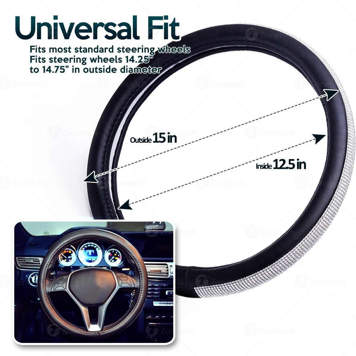 ► STANDARD FIT - The Zone Tech steering wheel cover is designed to fit all standard 15 inch steering wheels. It fits most standard steering wheels.