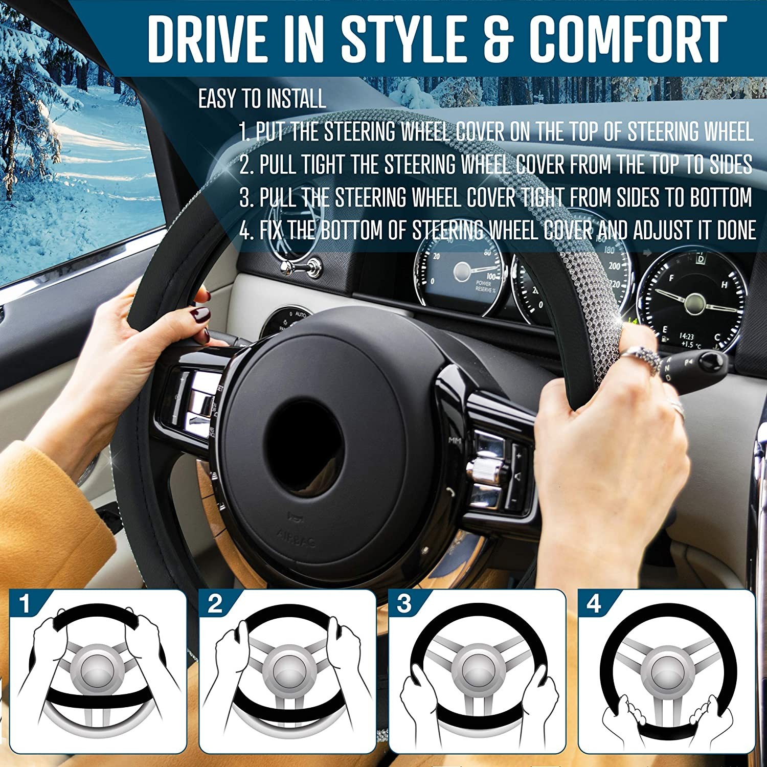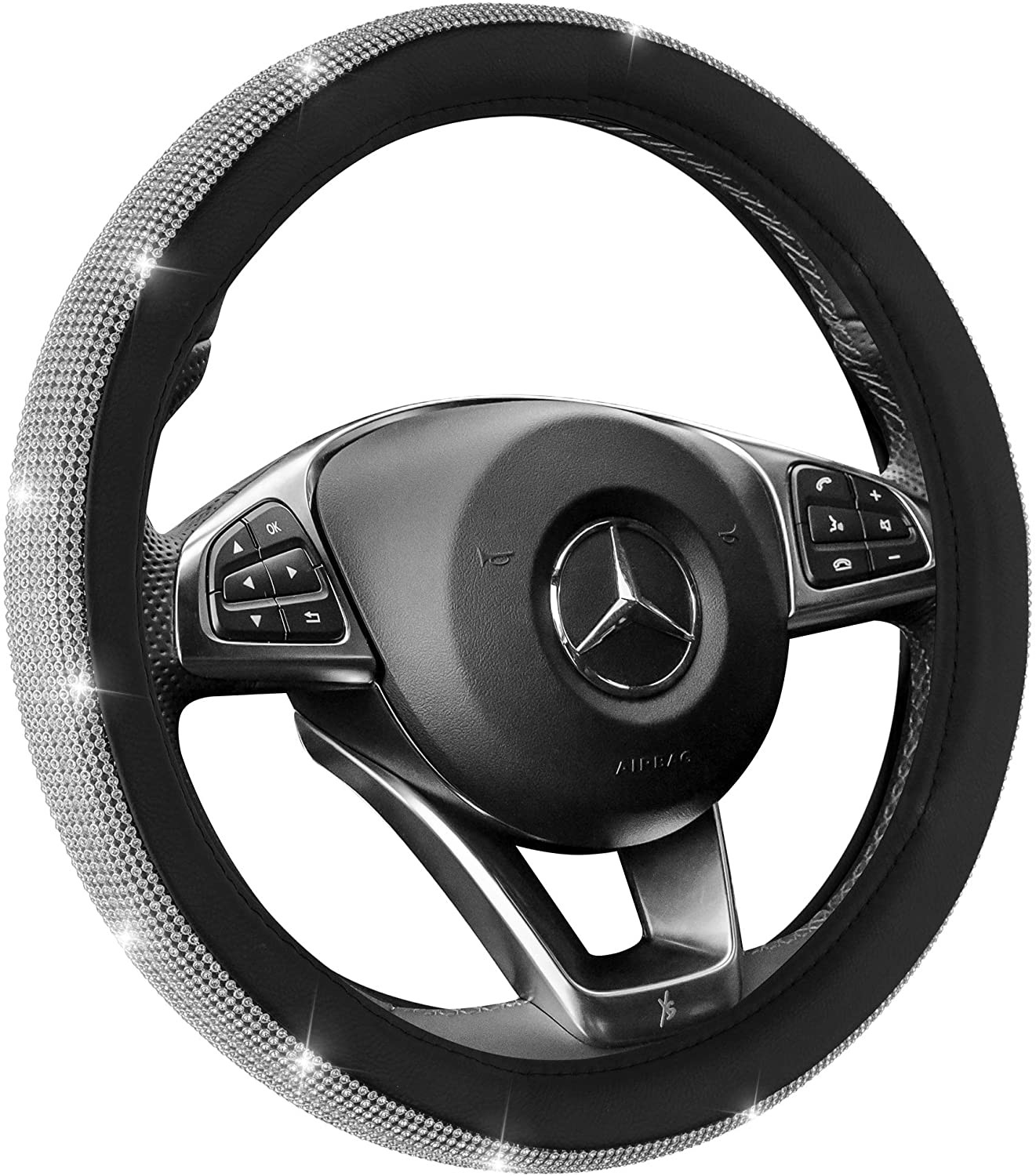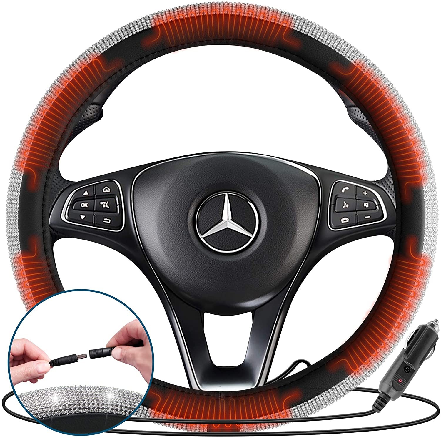 Zone Tech Car Steering Wheel Bling 12V Heated Cover - Classic Black and White Diamonds Rhinestone Premium Quality Ultra Comfortable Leather Universal Fit