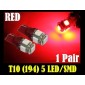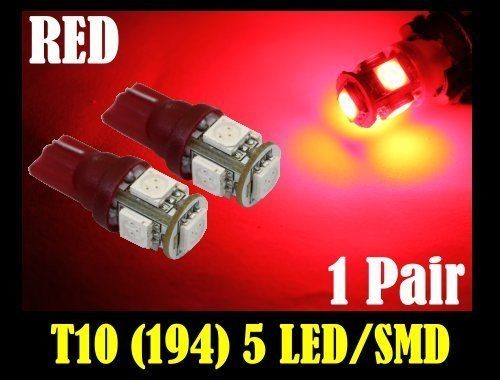 Zone Tech 2pcs 5-SMD T10 12V Light LED Replacement Bulbs 168 194 2825 W5W - Red