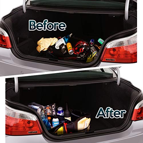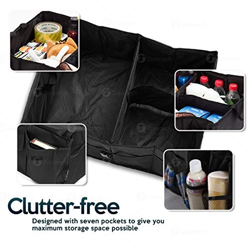 CLUTTER-FREE - The Zone Tech trunk storage bag is the ultimate solution in keeping your car clutter free. It takes up minimal space yet at the same time provides you with maximum storage. The largest compartment is spacious and roomy and is great for storing bulkier objects such as tools, groceries and the likes. The two open interior pockets are medium sized for other practical objects. Lastly the four outside mesh pockets are ideal for easy access items.