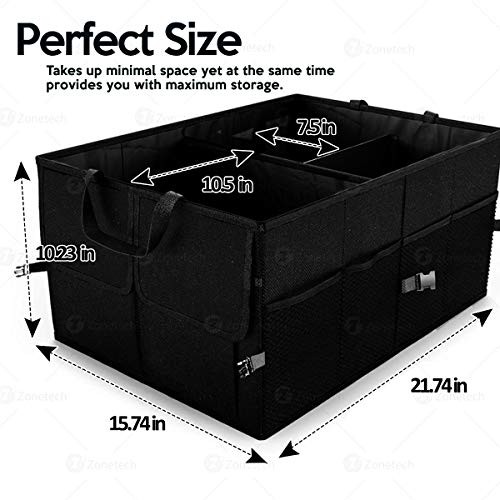 Zone Tech Multipurpose Cargo Trunk Organizer Car Storage Console Collapsible