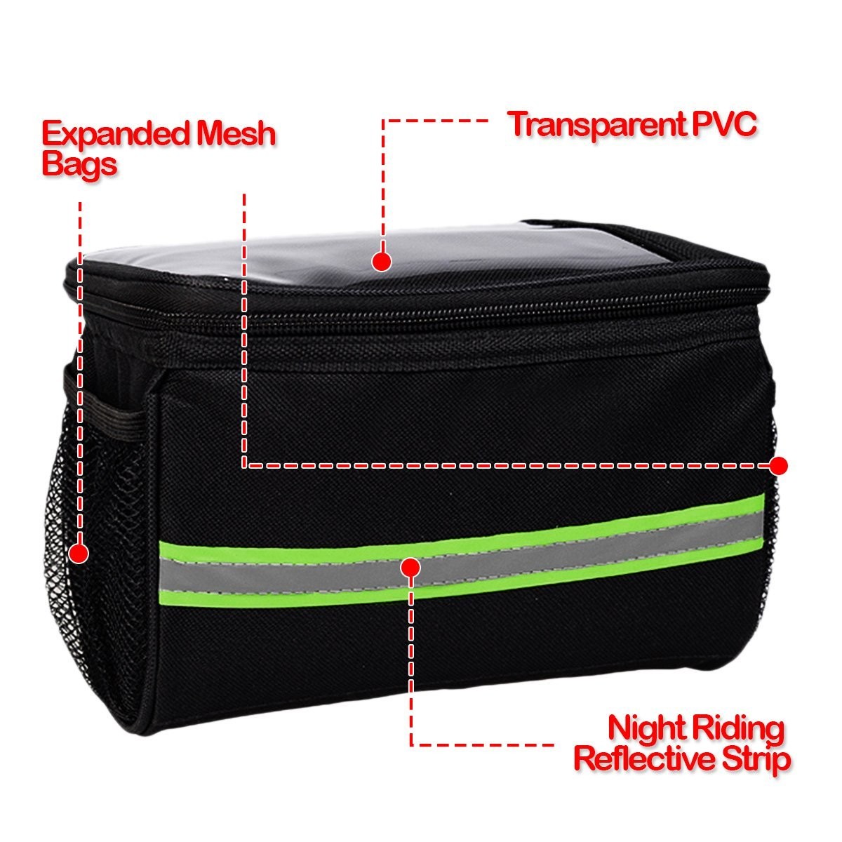 ► HIGHLY REFLECTIVE - The Zone Tech bike bag has reflective stripes that are highly visible and reflective even in any kinds of weather. You can easily be seen by others over 700feet away. This bag will ensure your safety in the dark. ► PRACTICAL - The Zone Tech bike bag is a must have for bikers & travelers alike. The Zone Tech bike bag is designed in a most practical way. The bag can take up to a larger capacity of 3.5L and is also waterproof. ► SMART DESIGN - The Zone Tech bike bag has a transparent PVC design in the top so you can put some small things like map. It also features two mesh side pockets that work great for keeping bottles, drinks cups or containers as well as odds a...View More - Specification