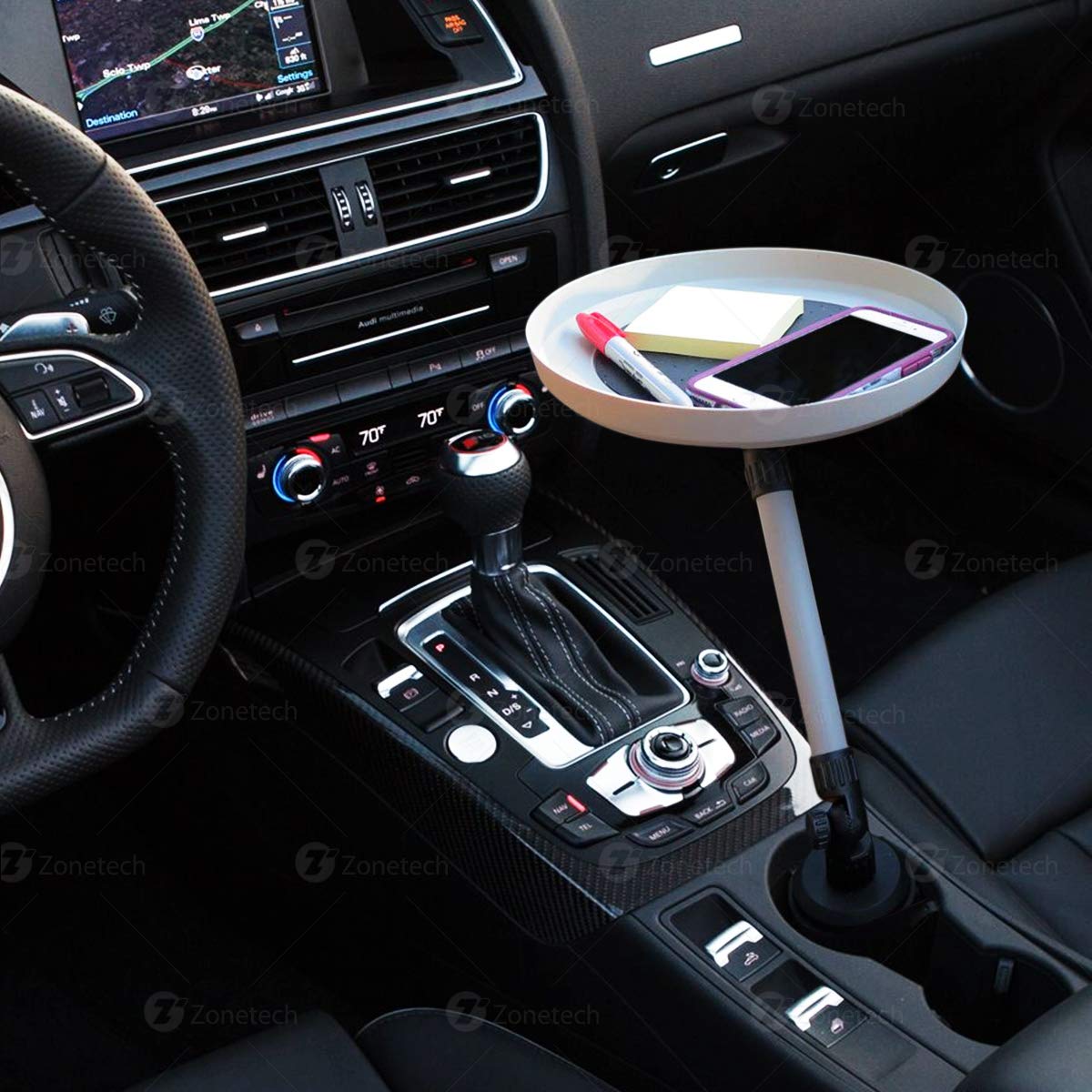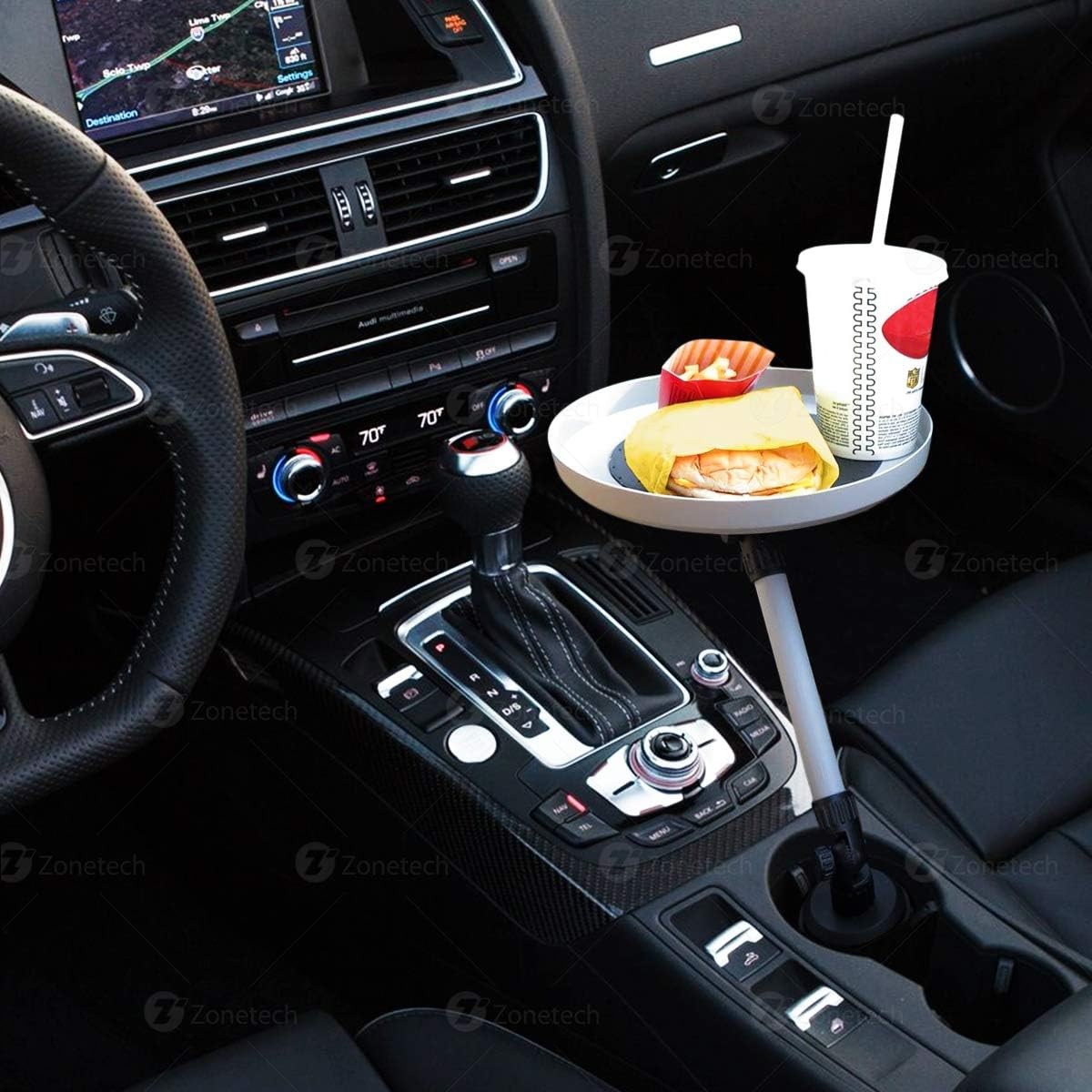 Zone Tech Car Swivel Tray and Storage Bin - Premium Quality 360-Degree Swivel Tray and Storage Bin Fits Most Car Cup Holder Whether you're eating on the run or holding necessities, the Zone Tech Car Swivel Tray and Storage Bin is Perfect for you. This tray is Useful, Handy and Good for midsize and large cars too. This swivel tray puts what you need at your fingertips. The Zone Tech swivel tray features a Non-Skid, Textured Centre to keep items from rolling or sliding. It has 360-Degree Swivel design locks in place. The car tray swivels back and forth between driver and passenger. While the tray is Light Weight, it is surprisingly sturdy. The Zone Tech swivel tray is made from Premium Qualit...View More - Specification