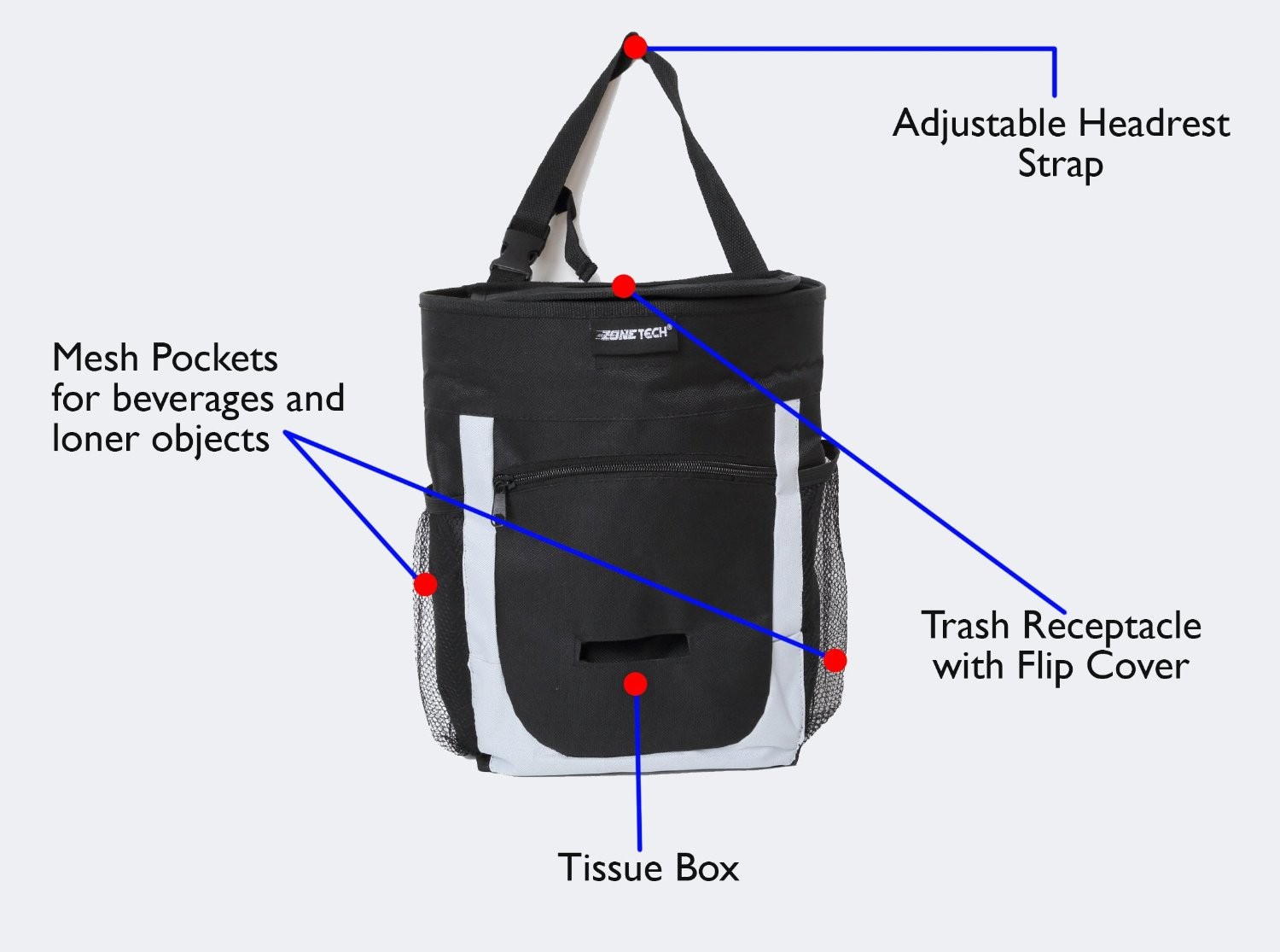 KEEPS LITTERS - The Zone Tech 3 in 1 Litter Bag is the solution to all the messy problems inside your car! The Bag features a fully leak proof trash bag , mesh side pockets for your drinks and bottles and lastly a tissue dispenser for tissues or wipes. Bring it with you and your family wherever you go to avoid messy car interiors!