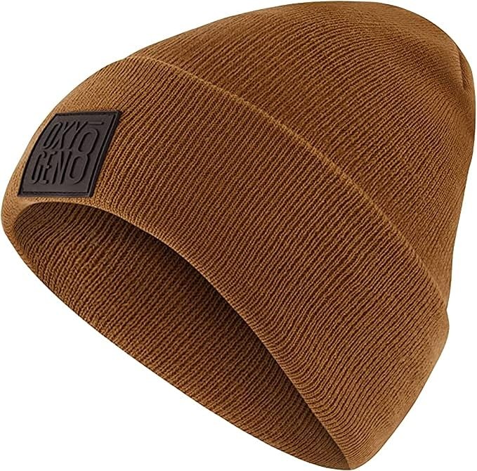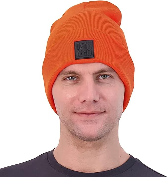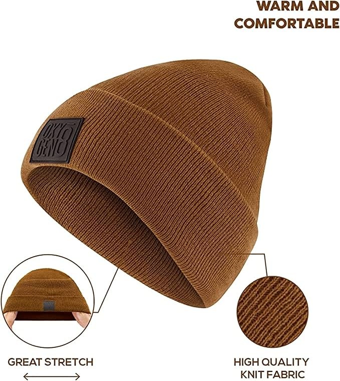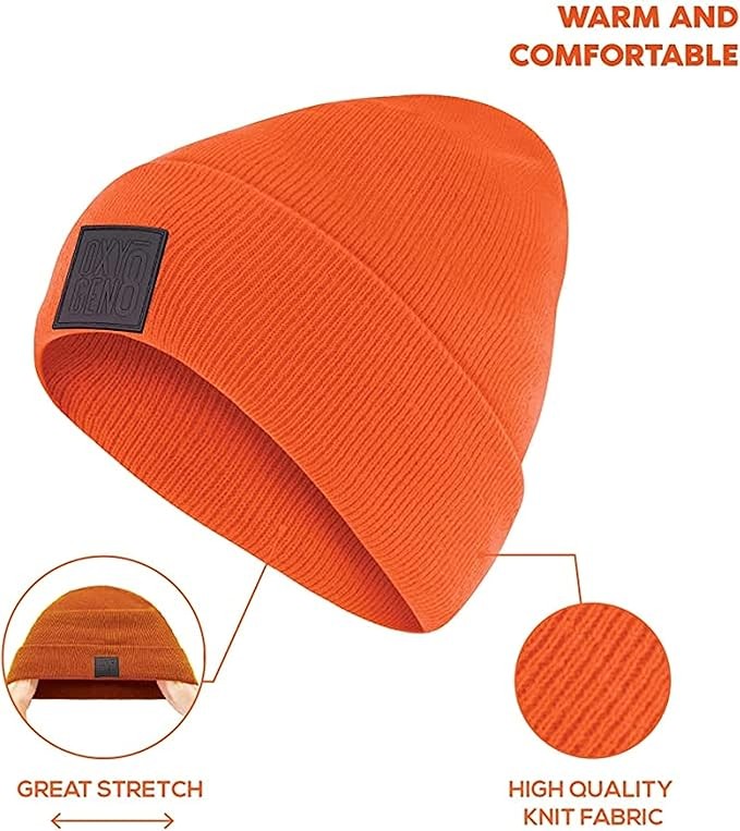 Beanie Hats for Men Women Soft & Stretchy Toboggan Hats Cuffed Skull Knit Winter Hats Men & Womens Beanie Cap Navy, Brown, Bright Orange