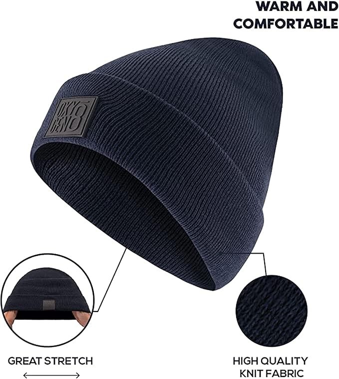 Perfect Gift for Men & Women This Classic & Stylish Black Navy Blue for Men & Women is the best gift for Birthdays, Christmas, Mother's Day, Fathers Day, Valentine's Day and New Year, etc. Whenever cold in winter, they will think of this warm Knit Beanie, Keeping your loved ones Head and Ears Warm while Looking so in style, and feel your love and warmth. FABRIC: This stretch knit womens and mens beanie cap is made from high quality stretch knit acrylic. Enjoy the comfort and warmth of this fabric. This winter hat for men covers your ears and will keep you warm during those cold days. COMFORT: This beanie hats for men or beanie hats for women has a pull on closure for quick and easy dress...View More - Specification