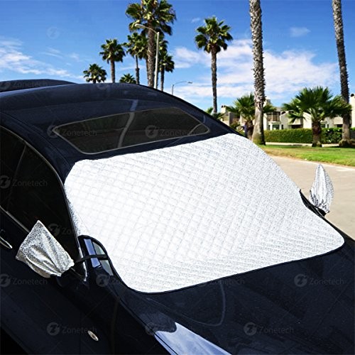 ► Zone Tech Car Windshield Cover Protector with Flaps and Separate Side Mirror Cover Protects your windshield from the from the Frosty snow and ice in the Winter. The Zone Tech windshield cover Covers the Full windshield so there is not an inch of windshield uncovered.
