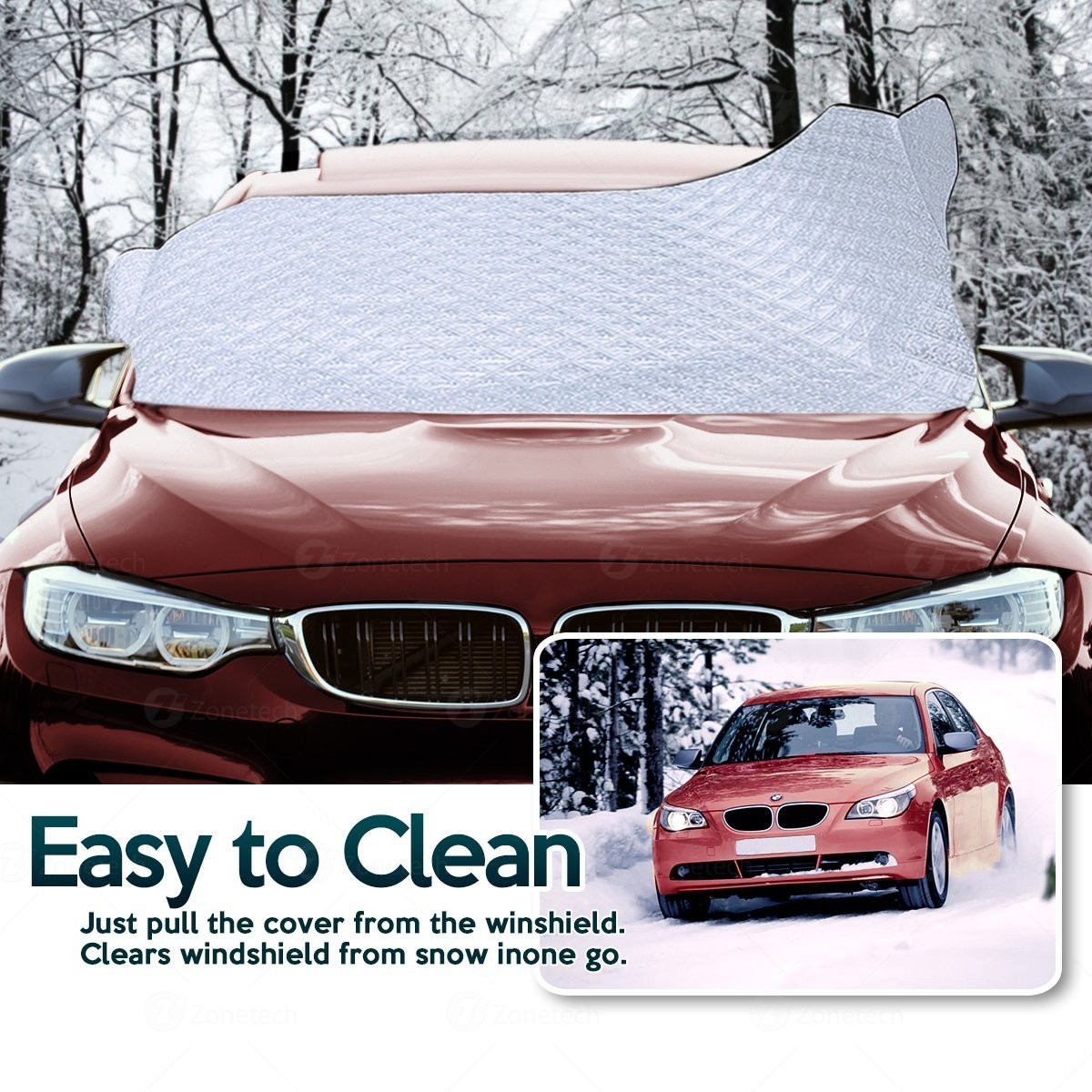 ► The Zone Tech windshield cover acts just like a Blanket, Shielding your vehicle's interior from snow ice and frost instantly. Just place the cover over the windshield and close the doors with flaps inside it. Next, put the side mirror covers to cover your car's side mirror.
