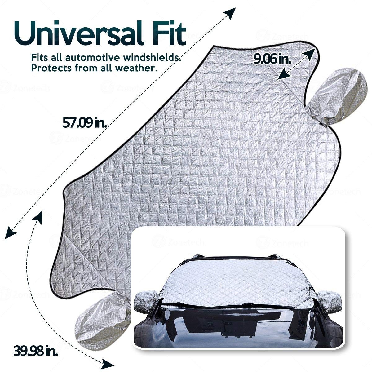 ► PROTECTION - The Zone Tech car windshield cover protects your windshield from the hot summers' sun and winter's strong snow. The Zone Tech windshield cover covers the full windshield so there is not an inch of windshield uncovered. The Zone Tech windshield cover acts just like a blanket, shielding your vehicle's interior from sunrays, keeping your car cool.