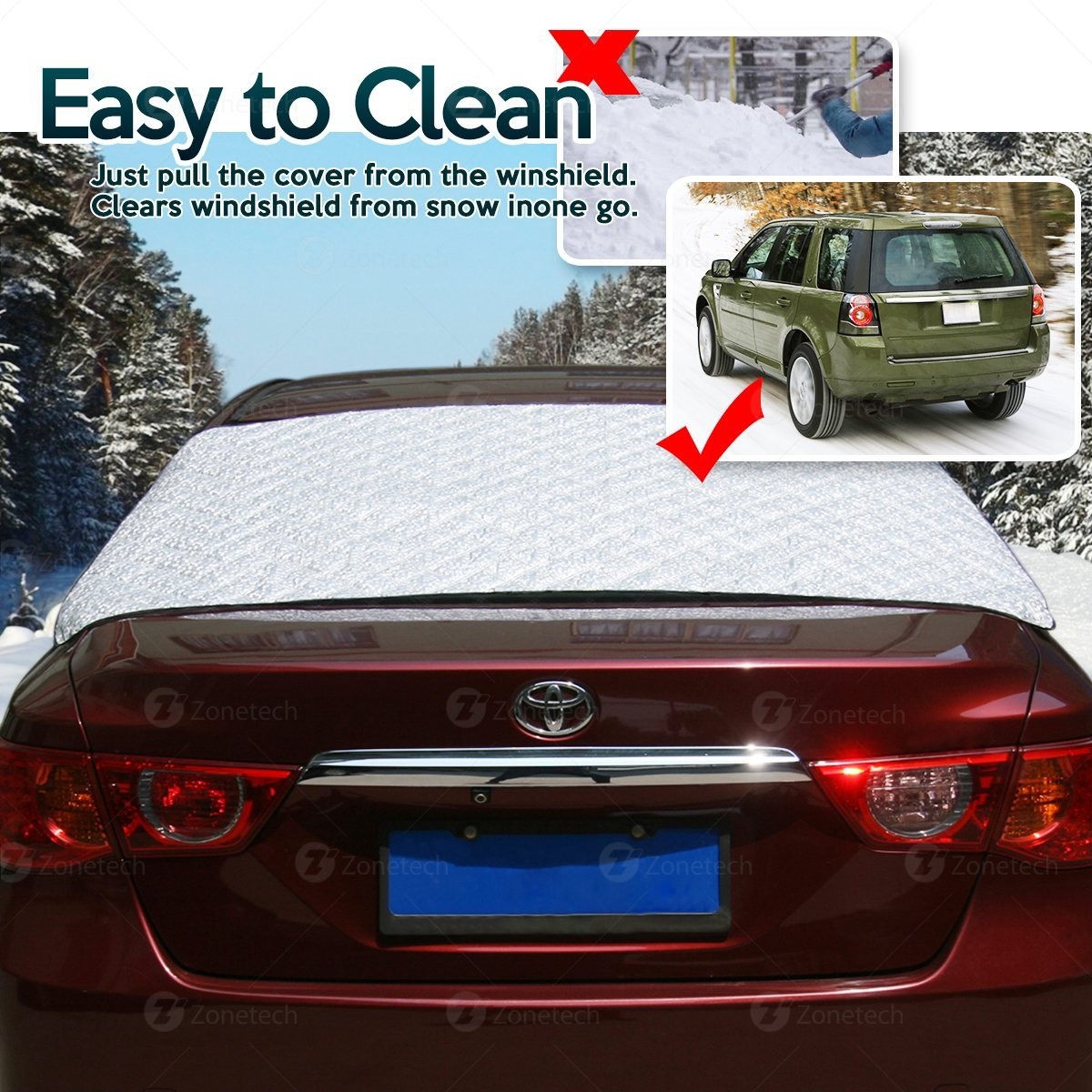 ► UNIVERSAL - The Zone Tech windshield cover will fit 99% of vehicles, from cars, trucks, and SUV's.