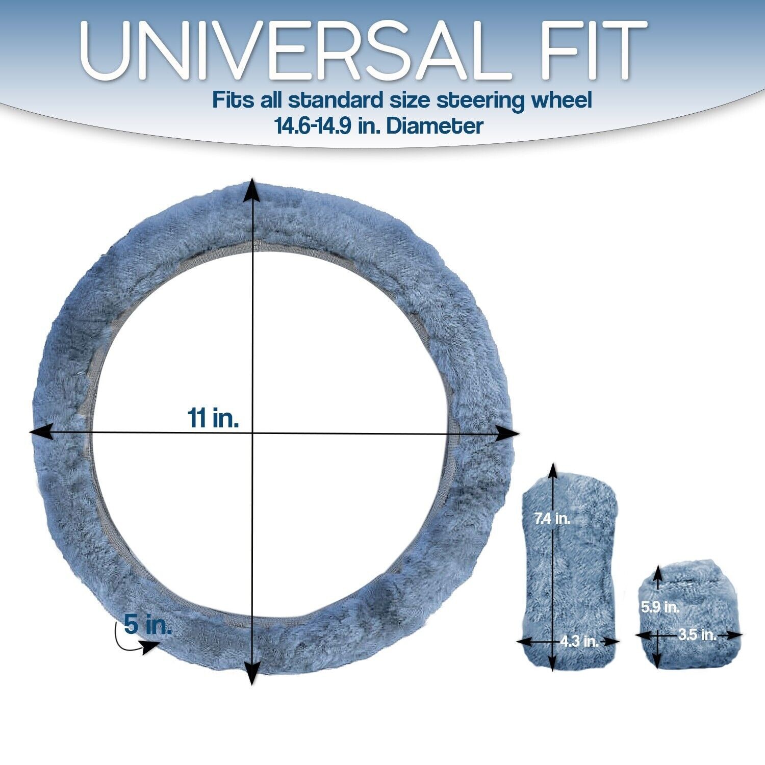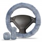 Blue Sheepskin Steering Wheel Cover+ Emergency Brake Cover+ Clutch Cover
