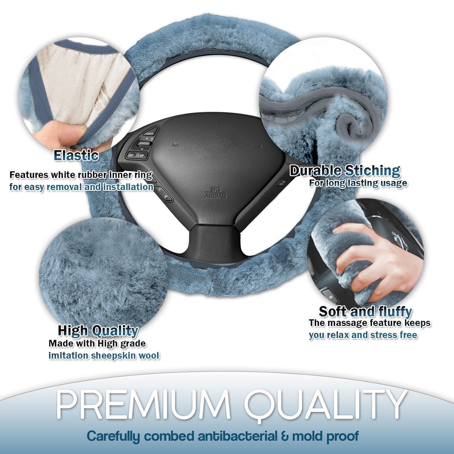 PREMIUM QUALITY - The Zone Tech Steering Wheel Cover is made with durable white rubber inner ring with a solid non slip feature. The cover is made with High-grade imitation cashmere wool that will surely last superbly year after year. The Zone Tech plush cover is carefully combed, antibacterial mold proof, an...View More - Specification