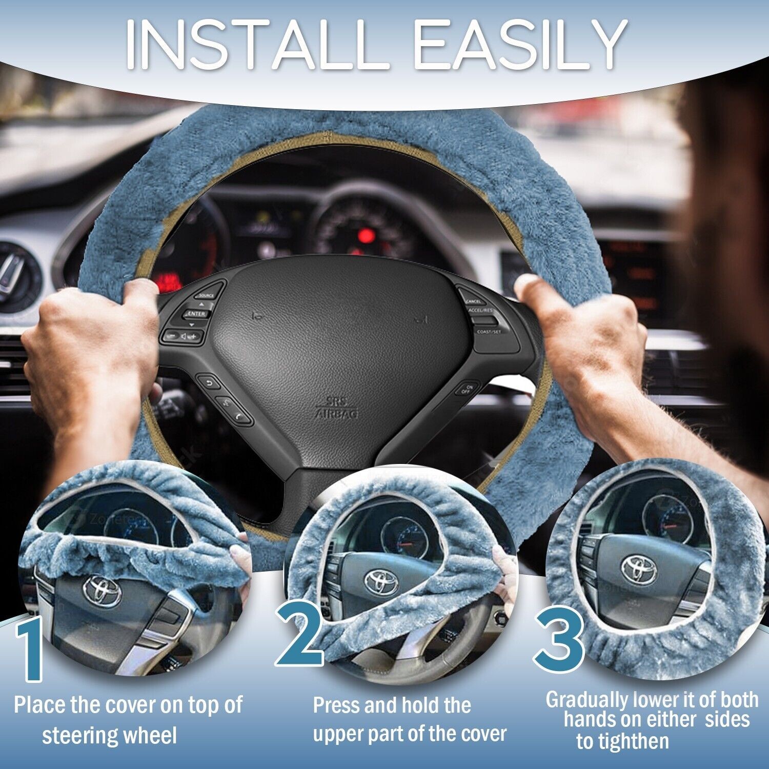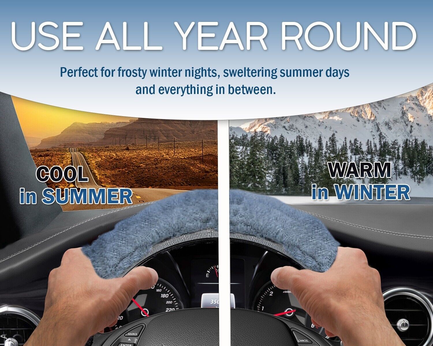DUAL PROTECTION - The attractive Zone Tech cover protects and improve the appearance of old or dirty steering wheels and also protects your hands from hot and cold extremes. The Zone Tech cover remains warm in the winter and cool in the summer, the plush steering wheel covers are perfect for frosty winter nights, sweltering summer days-and everything in between.