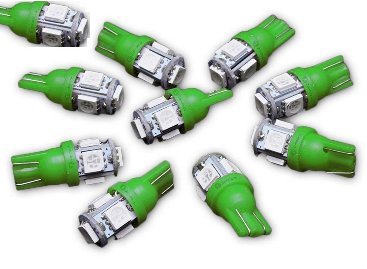 Zone Tech 10x T10 5 SMD 5050 Bright Green LED Bulbs Side Light 194 168 W5W Wedge