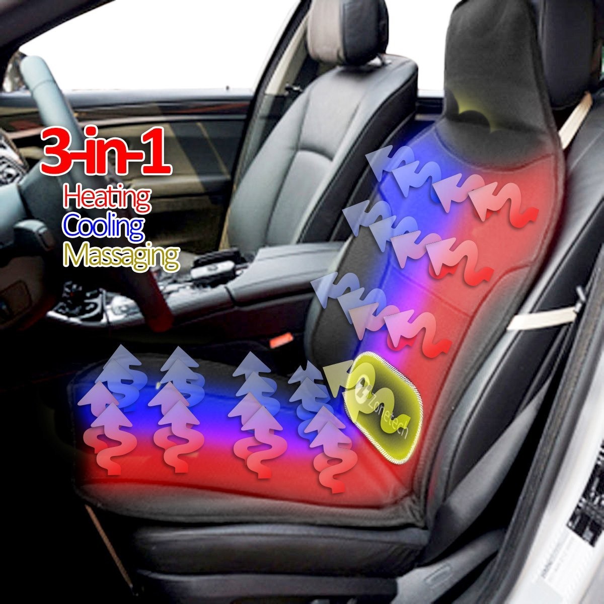 Zone Tech 3-in-1 Car Seat Cushion - 2-Pack Black 12V Automotive Adjustable Temperature Comfortable Cooling, Heating, Massaging Car Seat Cushion