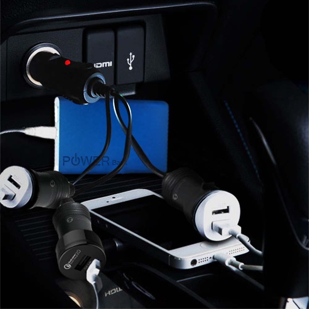 3 Socket Short Cord 12V Adapter+ Triple USB Car Charger