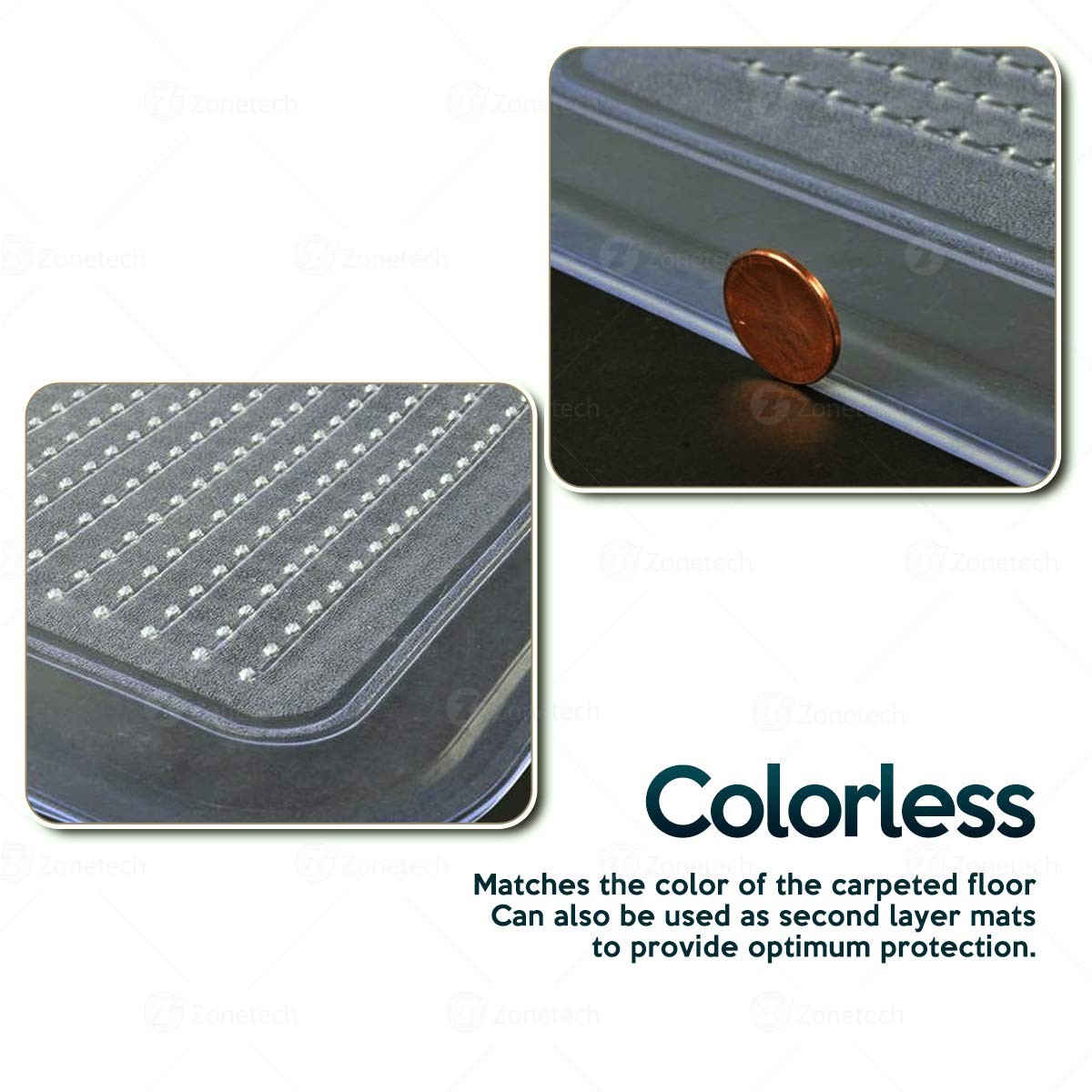 CLEAR - The Zone Tech car floor mats make you retains the beauty of your car interior. Because they're colorless, they can match any color, they can even show the color of the carpeted floor. They can also be used as second layer mats to provide optimum protection.