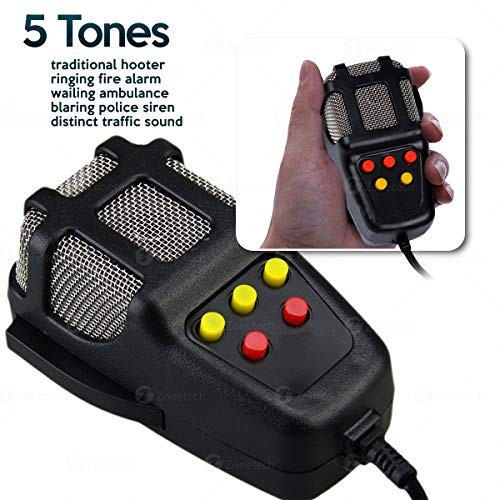 PREMIUM QUALITY - The Zone Tech sound car siren is constructed from premium quality materials to ensure maximum strength and durability for long lasting usage. The kit includes solid state PA microphone assembly for clear voice commands and a 80 Watt siren system th...View More - Specification