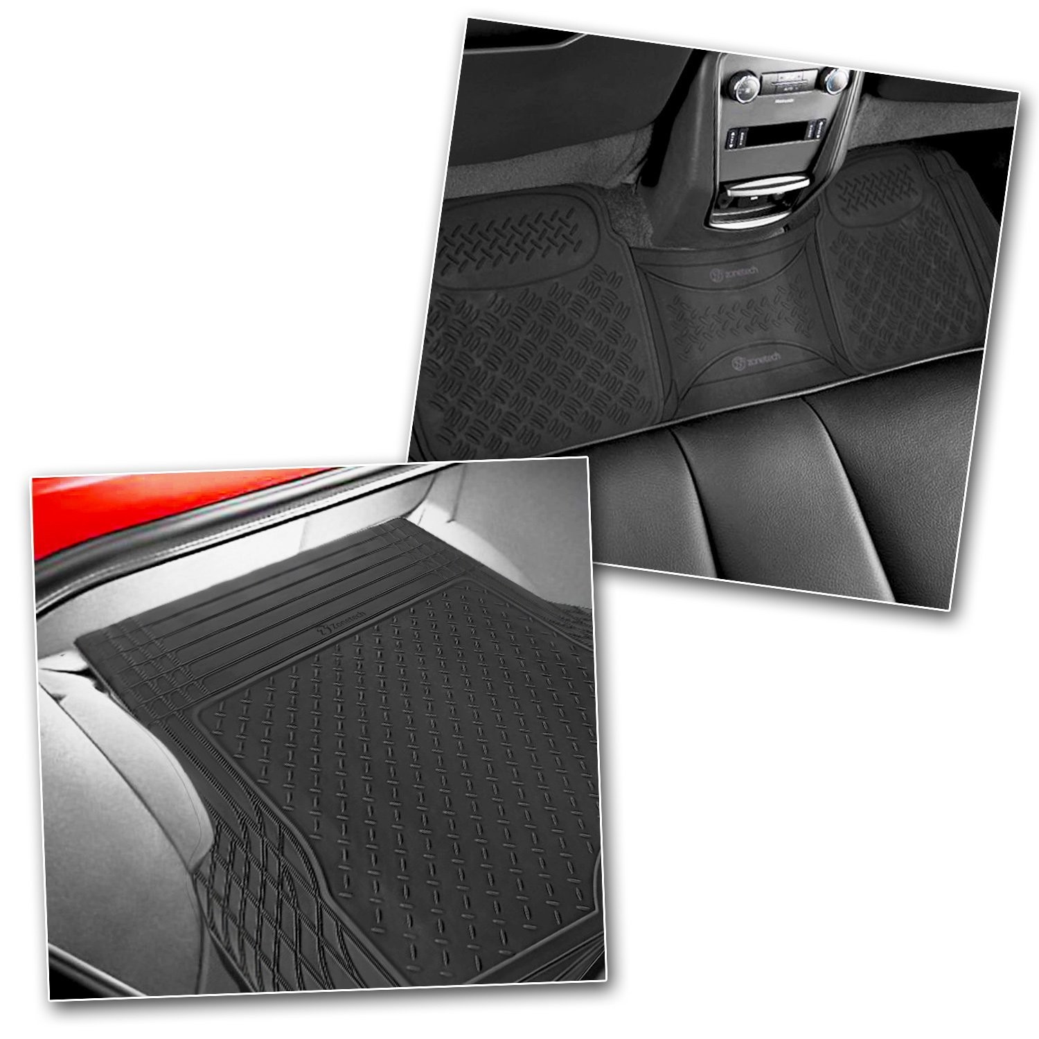 Zone Tech All Weather Rubber Semi Pattern Car Interior Floor Mats – 4-Piece Set Black Heavy Duty Car Interior Floor Mats