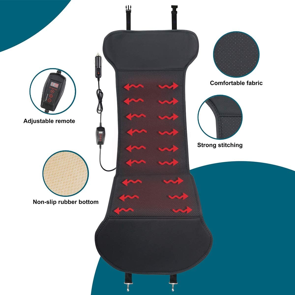 Zone Tech Car Heated Seat Cover Cushion with Temperature Control- Premium Quality Classic Black 12V Heated Comfortable Seat Cushion Perfect for Cold Weather and Winter Driving