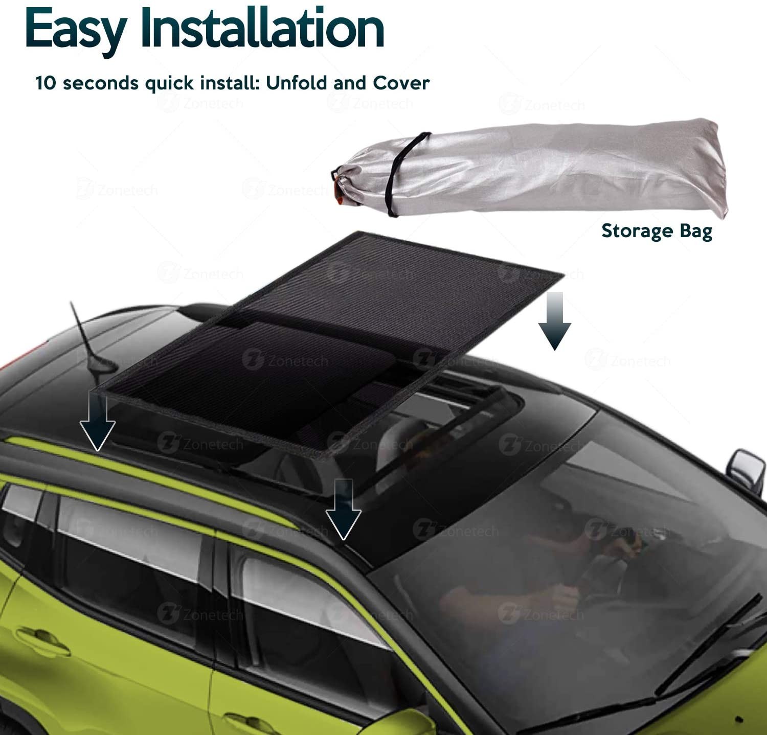 Zone Tech Car Mesh Sun Roof Magnetic Sun Shade - Premium Quality, Foldable, Cool Sun and Mosquito Blocking Breathable Mesh Sun Shade Blocks UV Sun by Parking Trips Great Protection, Easy Installation