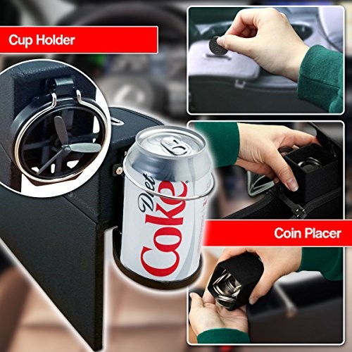 Zone Tech Driver and Passenger Side Pocket Organizer - Classic Black Premium Quality Coin Side Pocket with Cup Holder Organizer