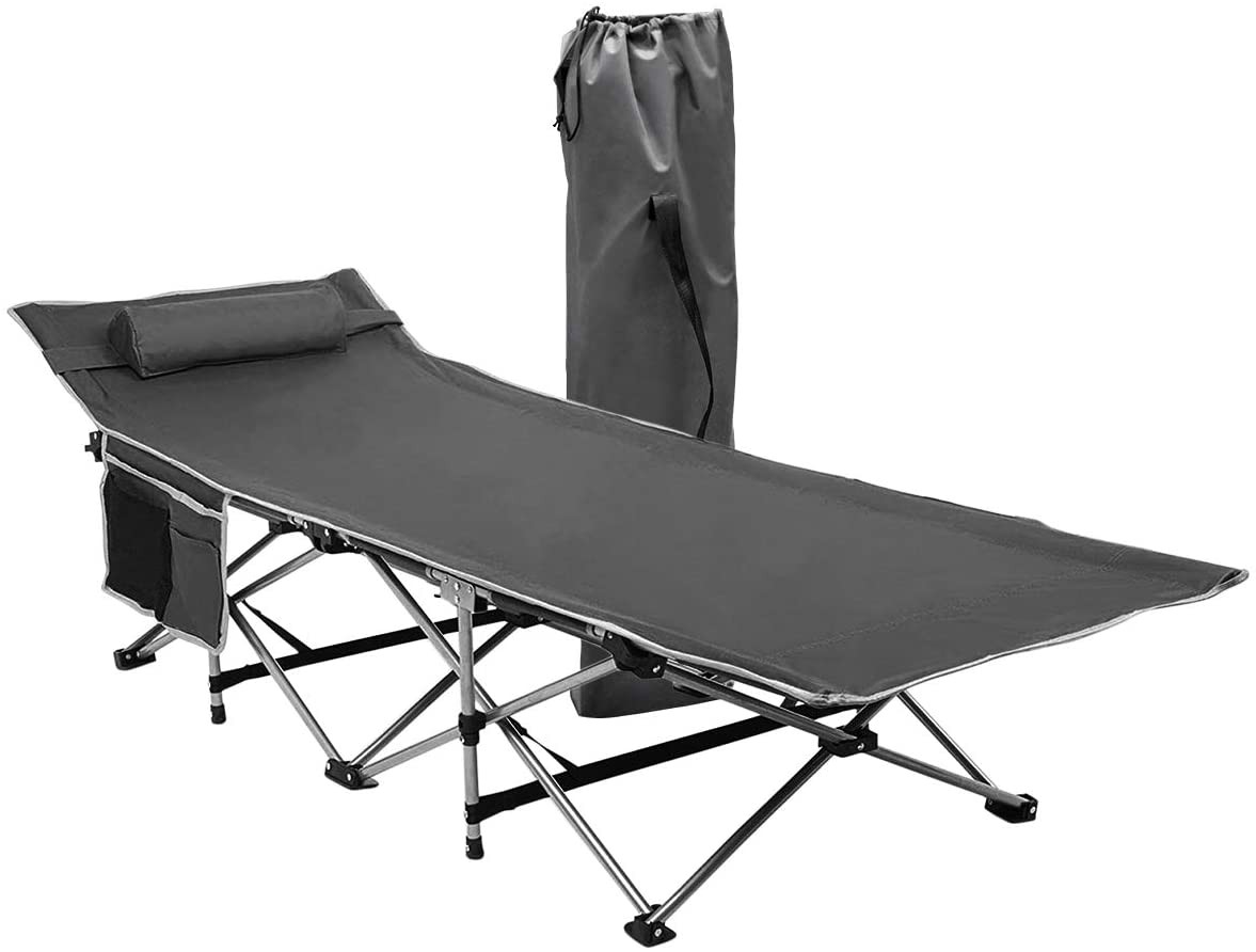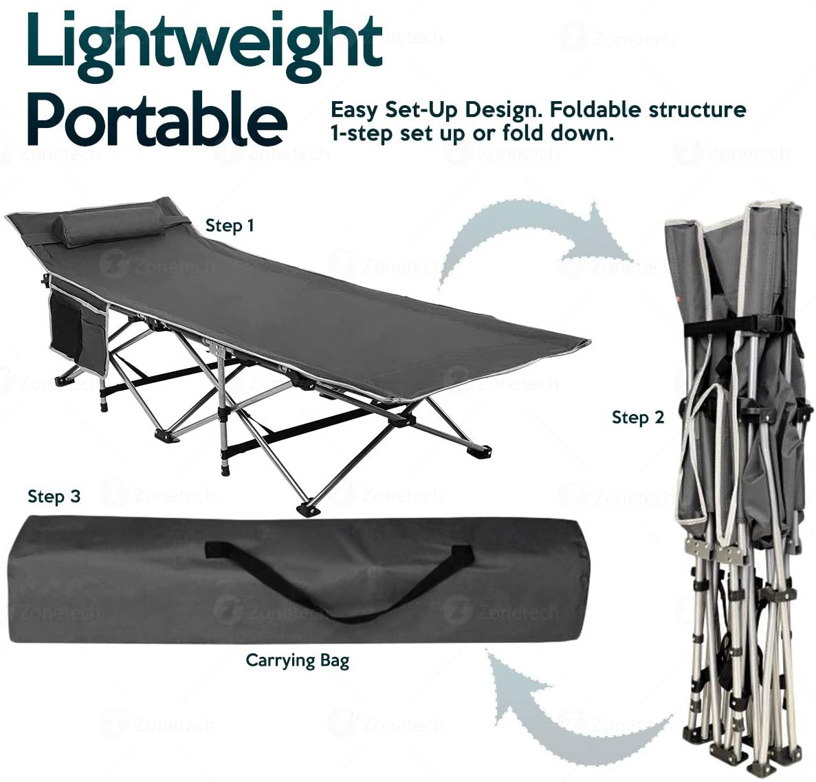 Zone Tech Folding Outdoor Travel Cot - Classic Grey Premium Quality Lightweight Portable Heavy Duty Adult and Kids Travel Cot with Large Pocket-Perfect for Hiking, Camping, and Other Outdoor Activiti