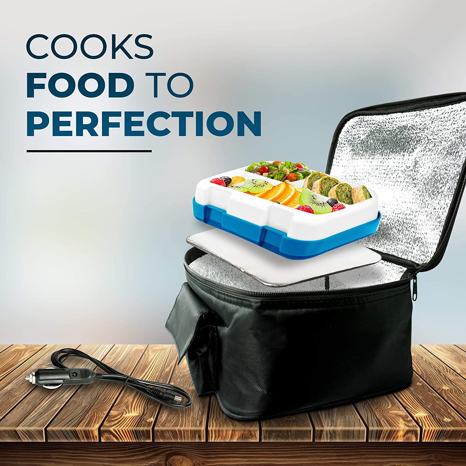 Zone Tech Food Heating Lunch Box - Premium Quality Portable Electric Insulated Black Lunch Box, Food Warmer and Heater- Perfect for Picnics, Travelling, Office and On-site Lunch Break