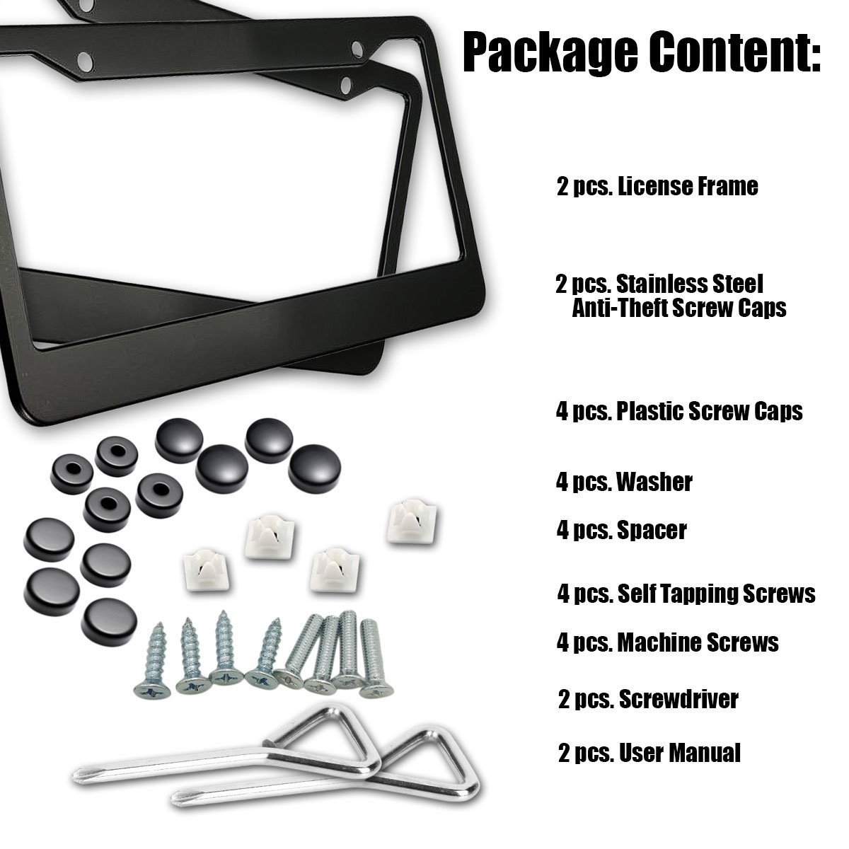 These simple matte black frames are the perfect replacement for my ugly dealer's frames. They're sturdy enough to hold my bent license plate in place until I get a replacement. The screw caps give it an overall clean look.
