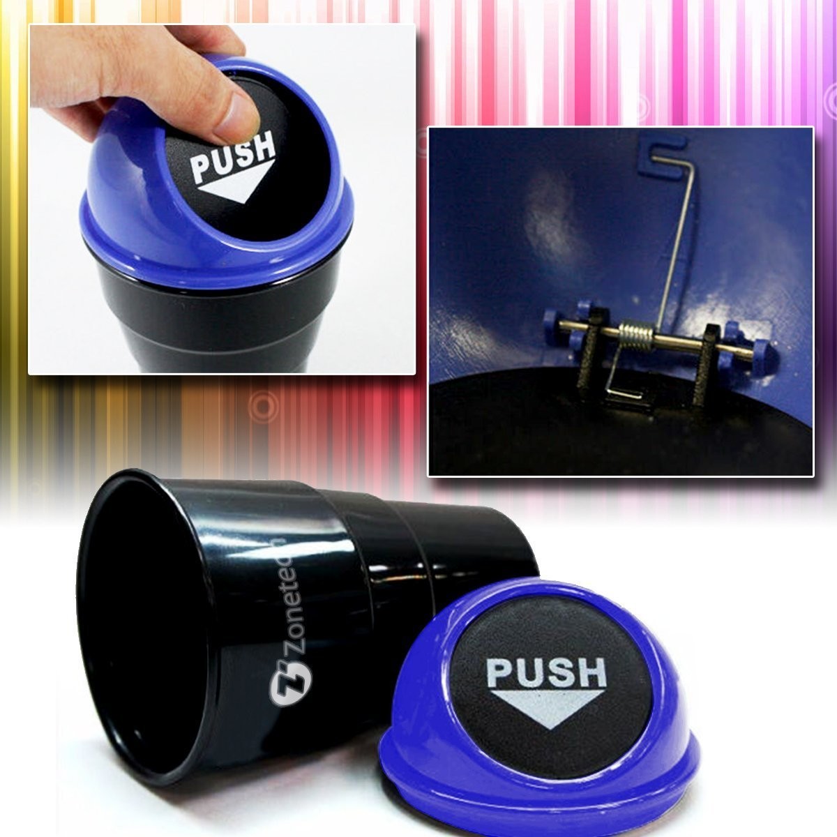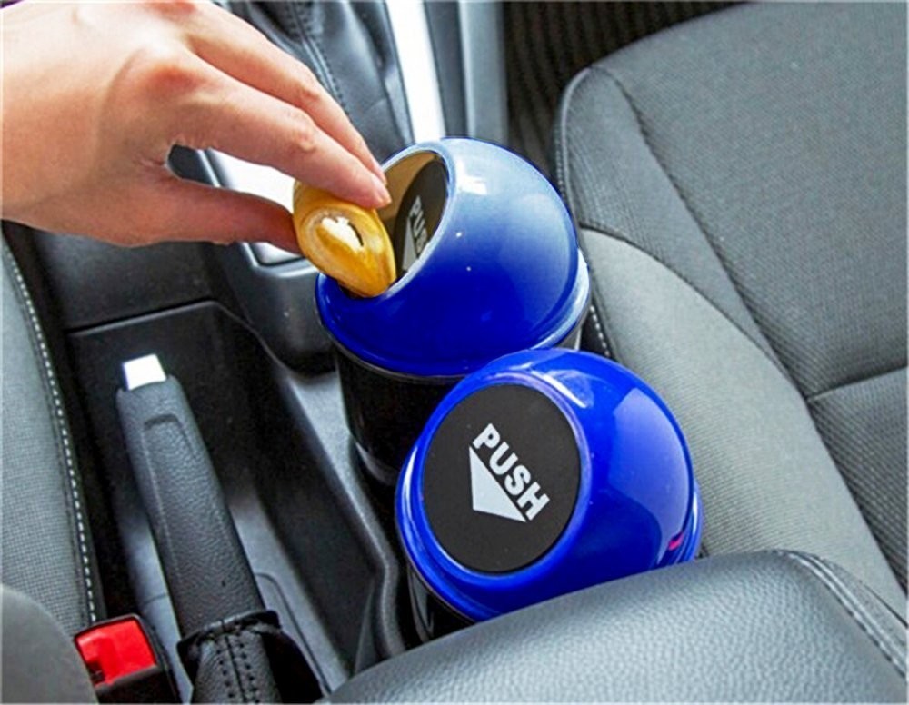 Zone Tech Portable Mini Car Garbage Can – Classic Black and Blue Premium Quality Black Universal Traveling Portable Car Trash Can