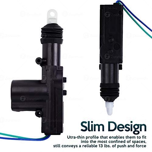 SMART DESIGN The Zone Tech power door lock actuator have an ultra-slim profile that allows them to fit into the most restricted of spaces, while still delivering a consistent 13 lbs. of push and pull. The lock actuator's 2-wire design offers a unique rotatable and changeable head. br>