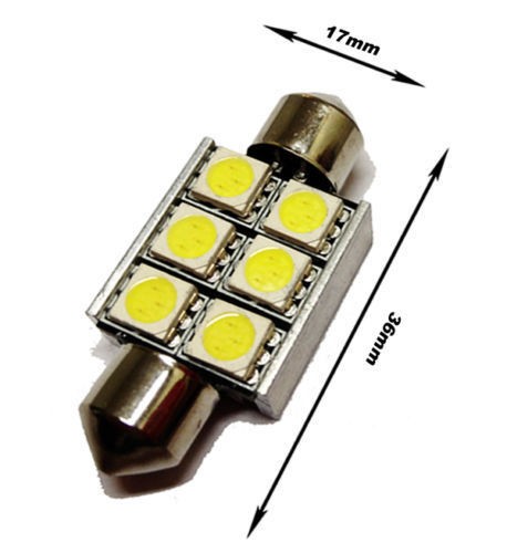 Zone Tech White 2x 36mm Canbus 6 SMD LED 5050 Interior Dome Light Lamp Bulb 12V