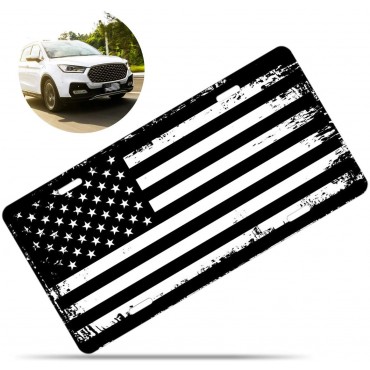 Zone Tech Tactical USA Flag License Plate - Black and White Grunge Premium Quality Thick Durable Novelty American Patriotic Pledge of Allegiance