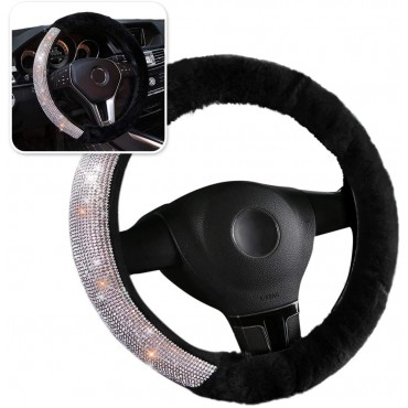 Zone Tech Plush with Diamond Bling Steering Wheel Cover - Premium Quality Diamond Bling Crystal with Plush High-grade Imitation Cashmere Wool Steering Wheel Cover
