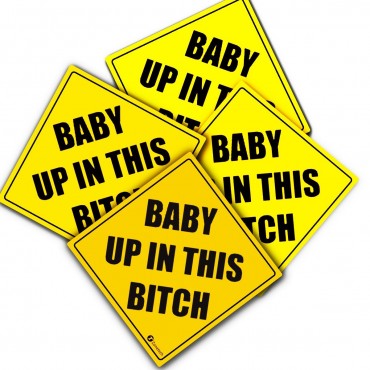 Zone Tech "Baby Up In This Bitch" Vehicle Safety Sticker - 4-Pack Premium Quality Convenient Reflective "Baby Up On This Bitch" Vehicle Safety Funny Sign Sticker