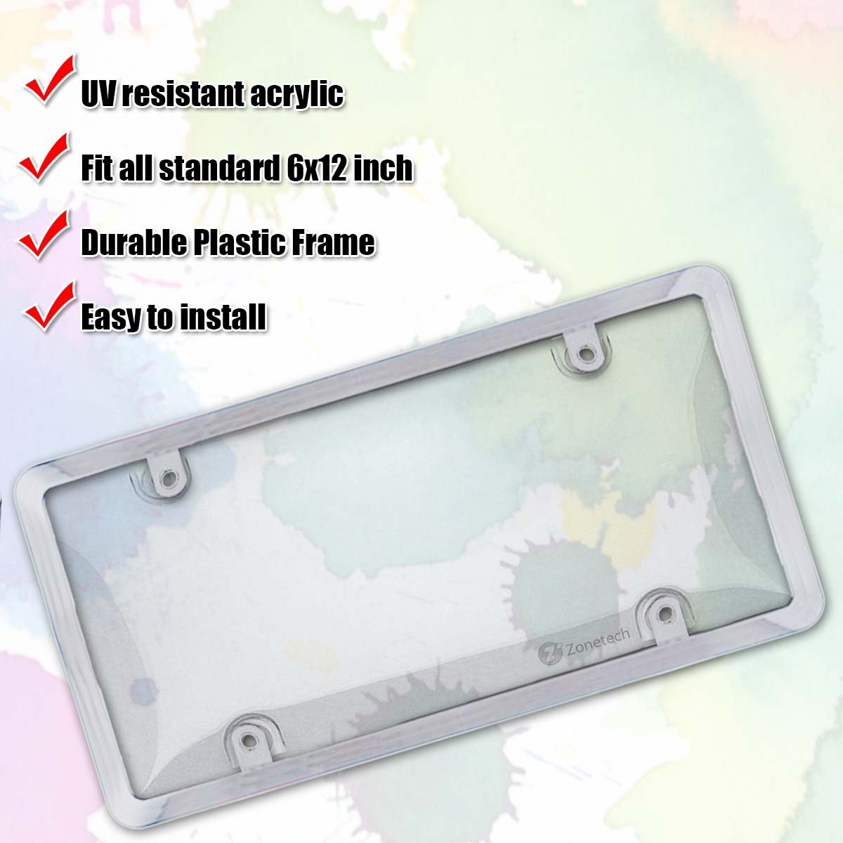 Zone Tech Clear License Plate Shield Combo - Premium Quality License Plate Clear Bubble Shield and Chrome Frame Bracket