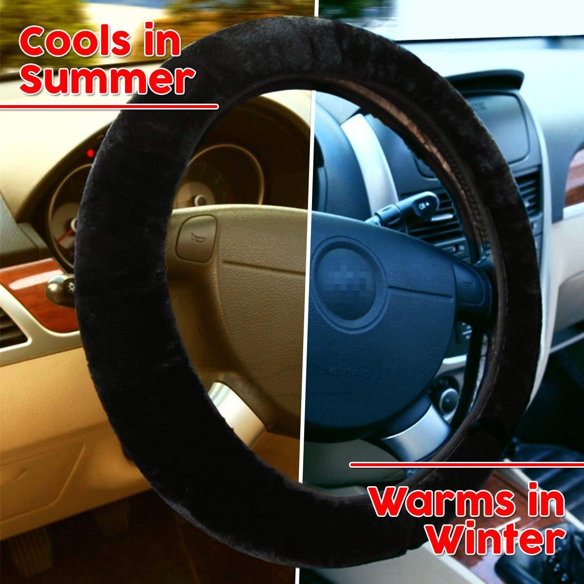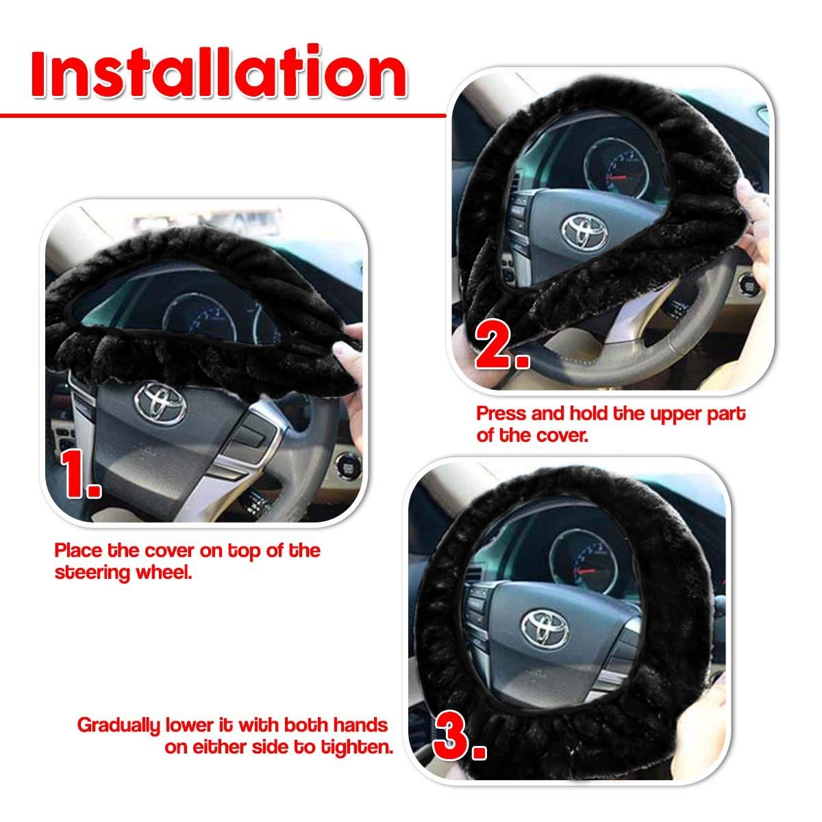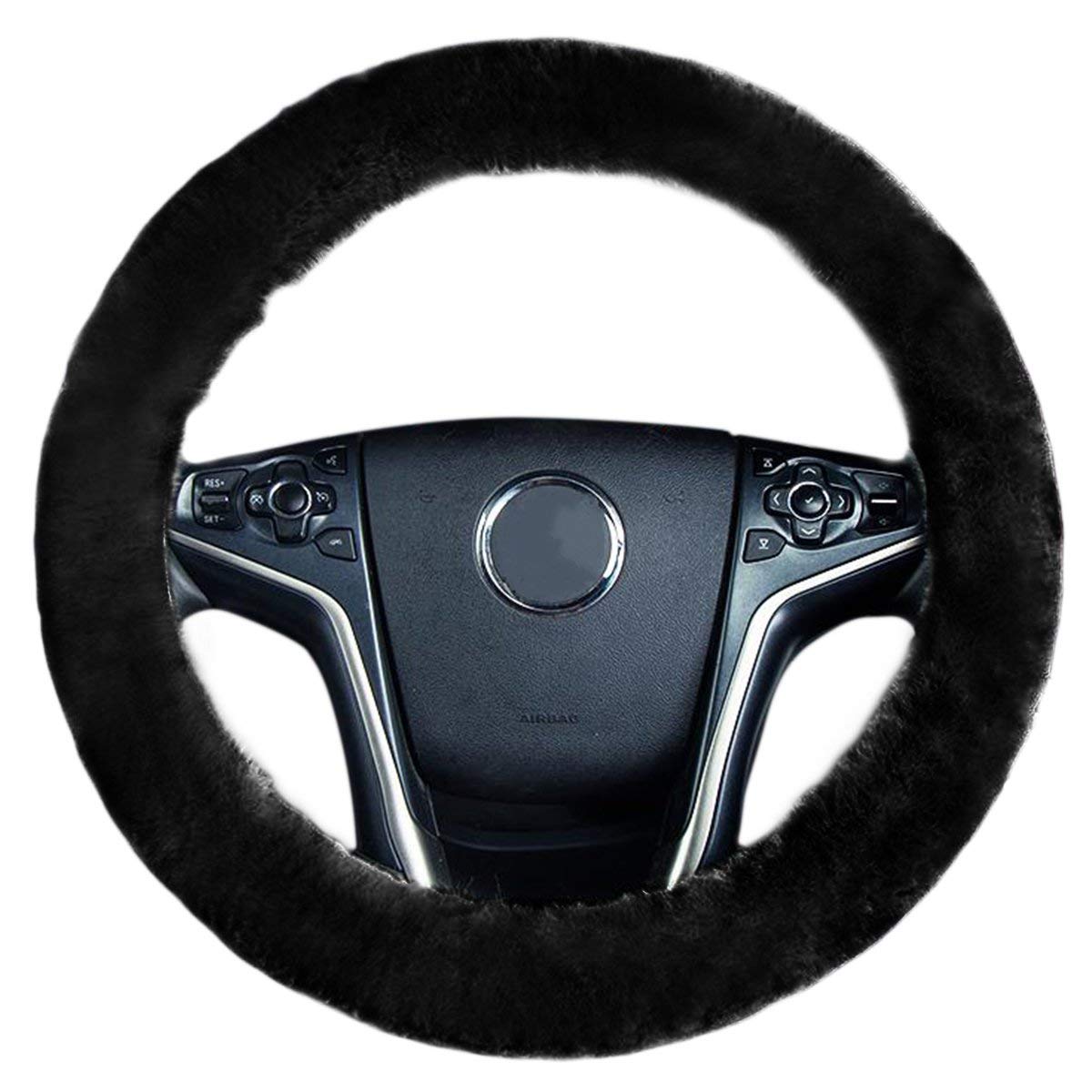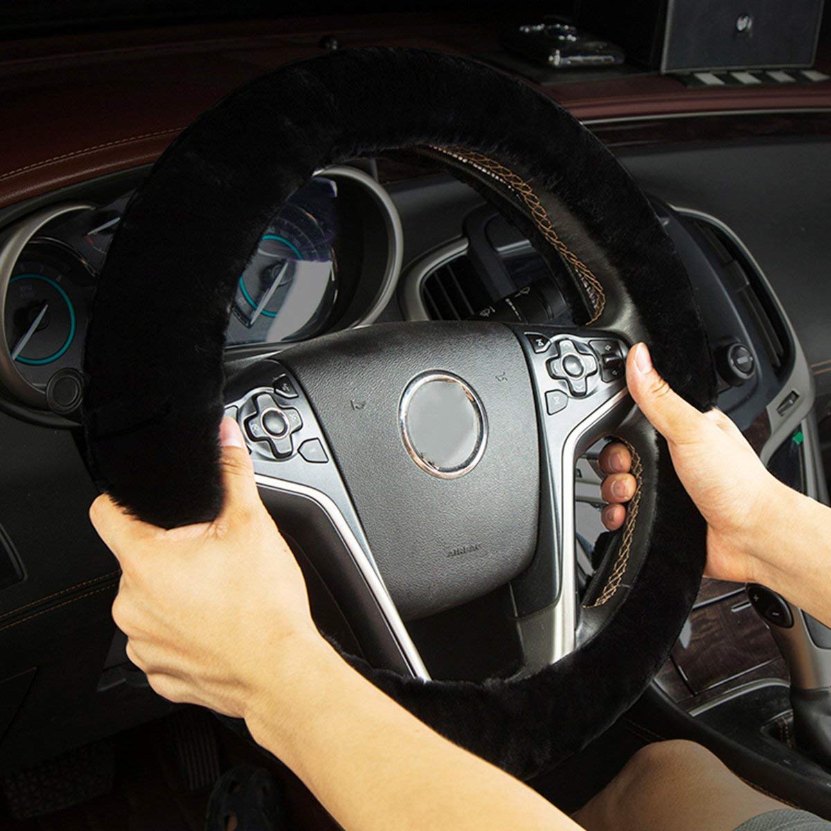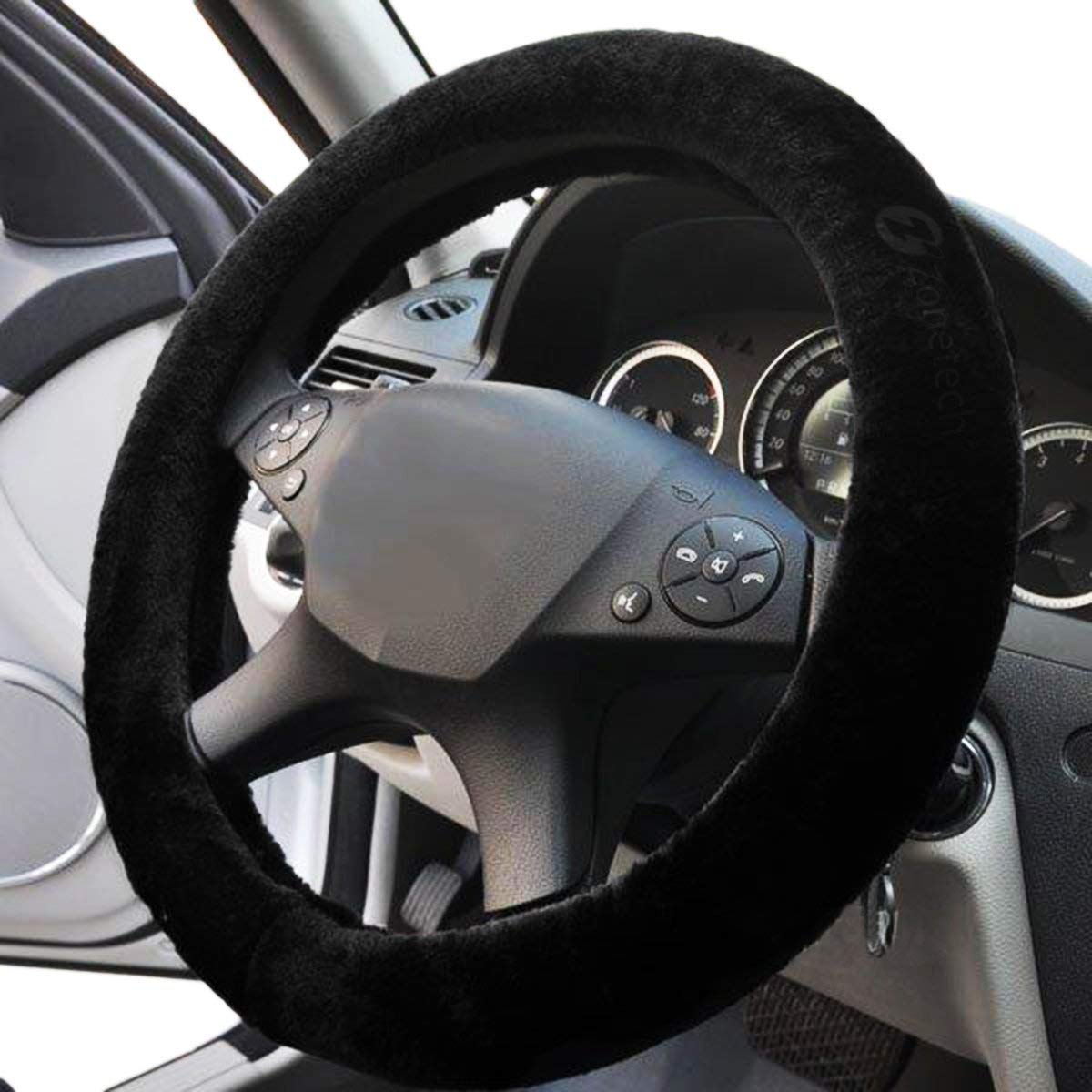 Black Sheepskin Steering Wheel Cover- Zone Tech Plush Stretch On Vehicle Faux Sheepskin Steering Wheel Cover Classic Black Car Wheel Protector